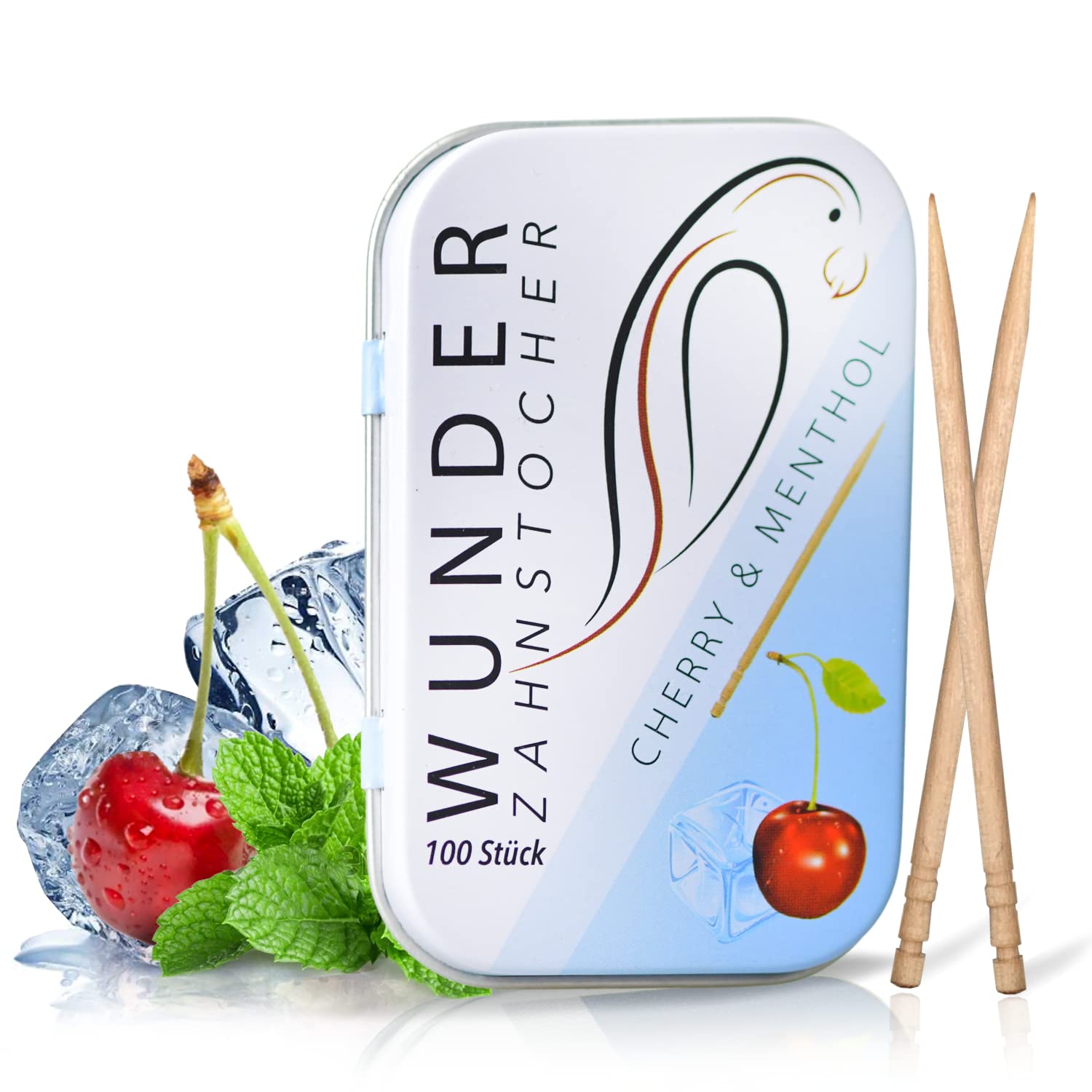 Wonder Toothpick - Flavoured toothpicks - Chewing Gum Plastic-Free - Stop Nail Biting - Fresh Breath with Flavoured toothpicks - Teeth Cleaning to go - Sugar-Free Vegan Cherry / Menthol Cherry Menthol