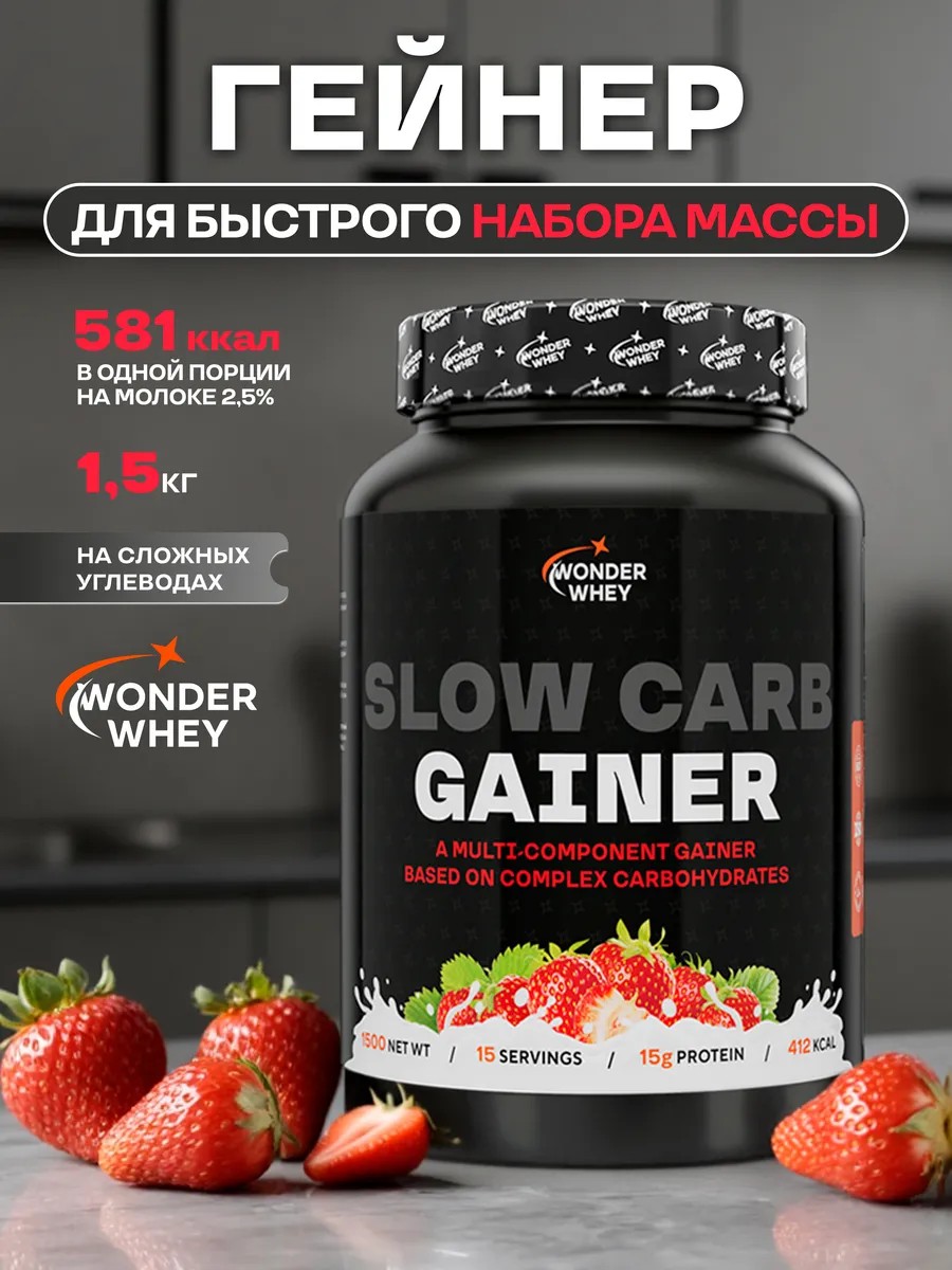 Гейнер для набора массы Slow Carb Gainer 1500г Клубника