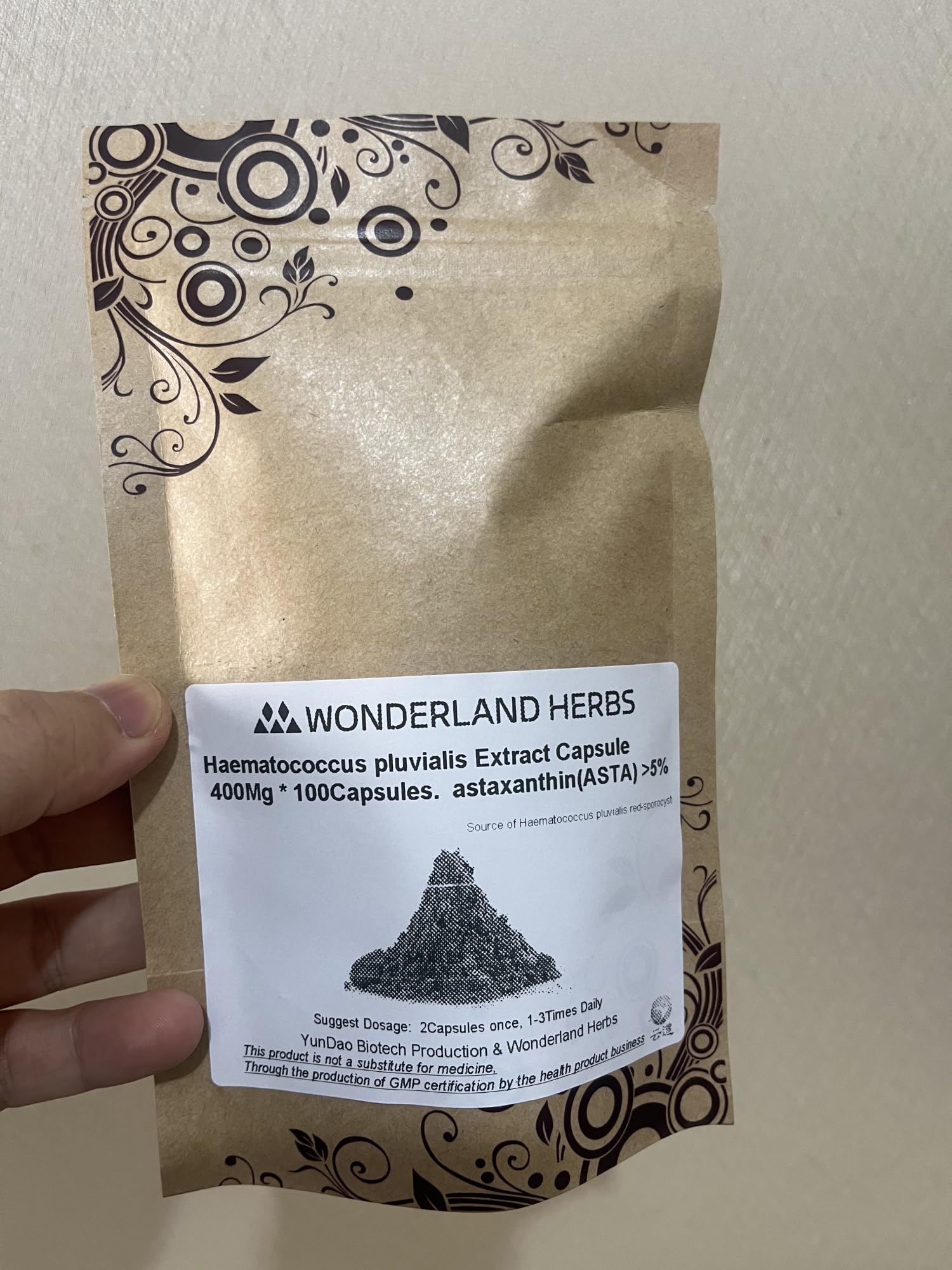 WonderLand Herbs Pure Haematococcus pluvialis Extract Capsule 400Mg * 1000 Capsules astaxanthin (ASTA) 5% The Strongest antioxidants Supplement Free Radical scavenging