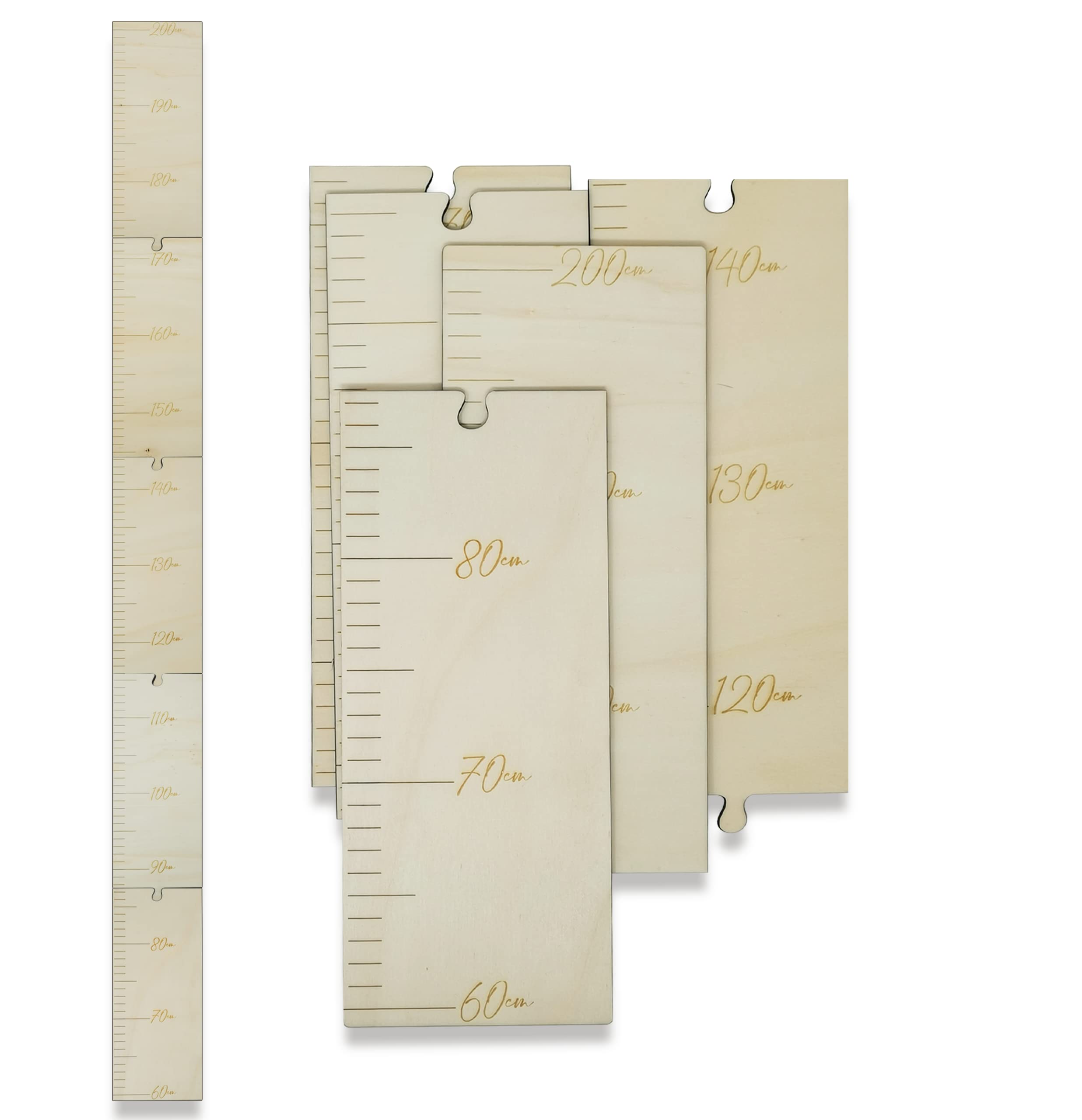 Made in Germany.The standard strip consists of a total of 5 wooden strips, which can be put into each other in the puzzle.Each wooden strip measures 30 cm x 12 cm.So you can document how small (60cm) grow up (up to 200cm).The scope of delivery includes about 20 glue points, with which you can easily glue the wooden scale on the wall and also loosen it again.The bar is cut from 4mm thick poplar wood.The wood is uncovered so that the bar can be easily labeled.Since the design is nice and simple, there are no limits to imagination and creativity in the design (painting, sticking).One is happy to document the growth of the little ones.This can be done with the measurement strip to the wall without the wall being affected and even when moving, memory can be easily removed and hung up again.This simple yardstick for the children's room, play room, living room or the kitchen is a great idea for growing families.