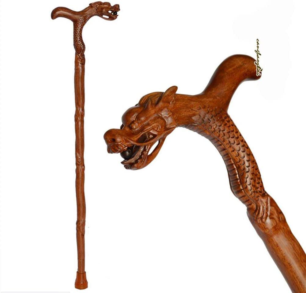 Wooden Walking Sticks Solid Wood Gift Walking Sticks Dragon Shaped Handle Old People Carving Canes Crutch and Sturdy Mobility Aid for Elderly Seniors & Handicap Prosperous