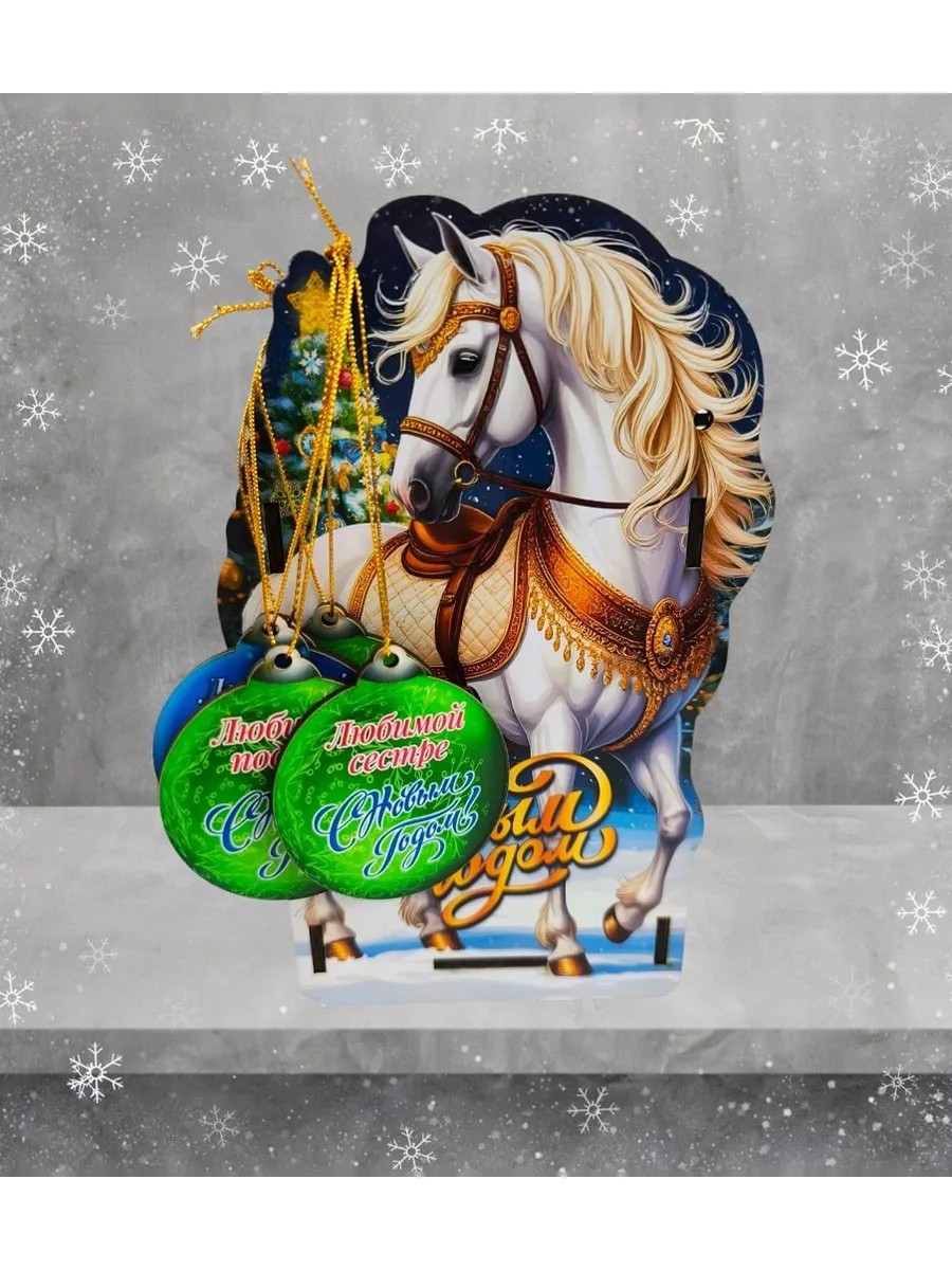 Woodenteka Чай черный в шкатулке "Лошадка белая" с биркой "Любимой подруге"