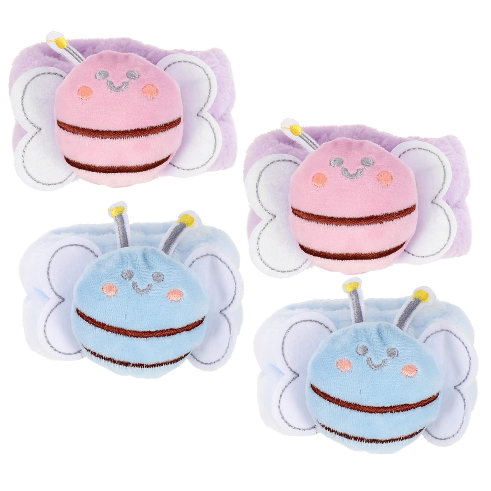 WOONEKY 4pièces Bracelets De Lavage De Visage Absorption Eau Design Abeille Accessoires Spa Confortables Pour Éviter Humidité Lors Du Lavage Du Visage