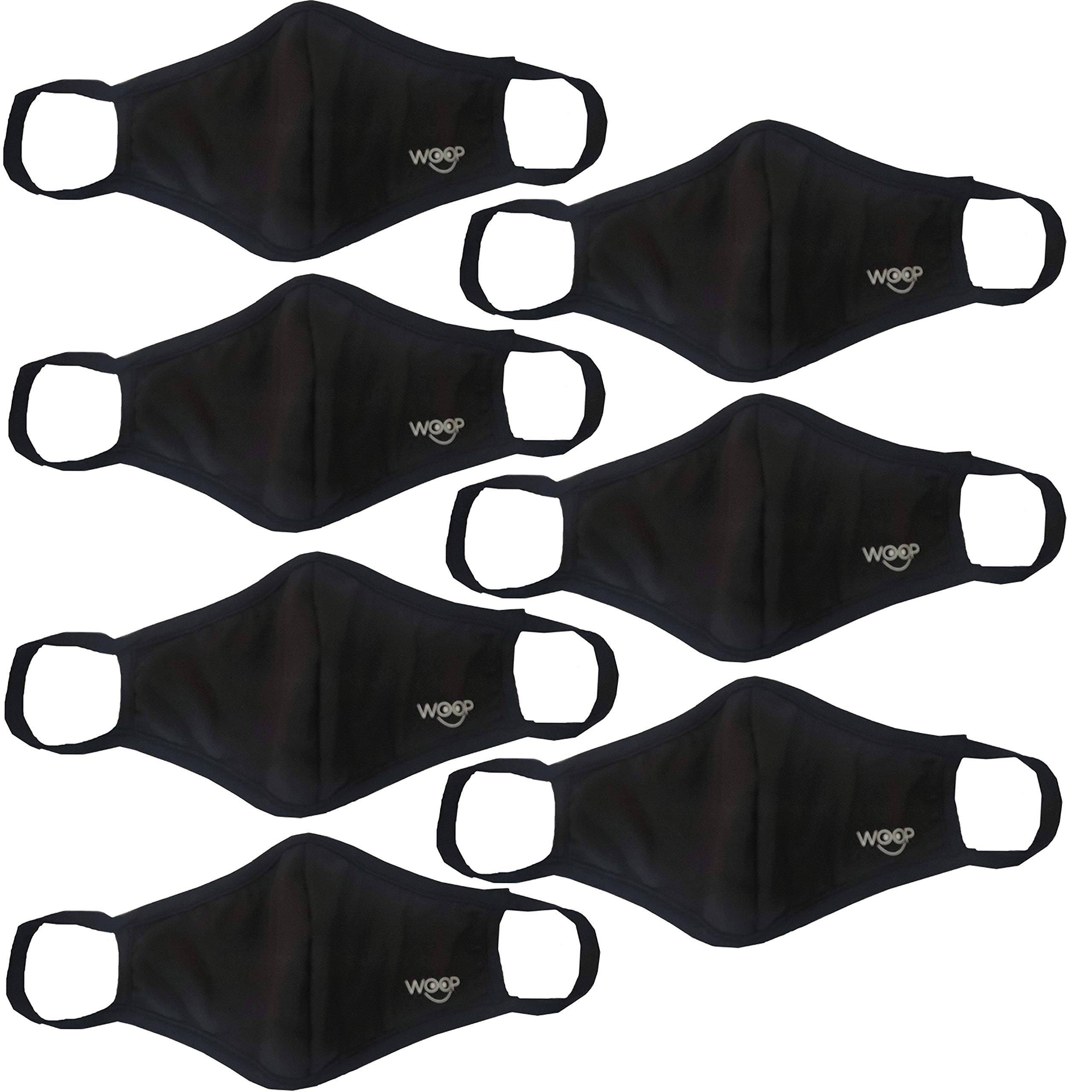 Woop Face Mask Washable Reusable Black Face Masks For Health Protection n Skin Care Unisex Mouth Filter Facemask Soft Dri-Fit Handmade in India Nose to Chin Mud & Pollution Dust Cover - SET OF 7