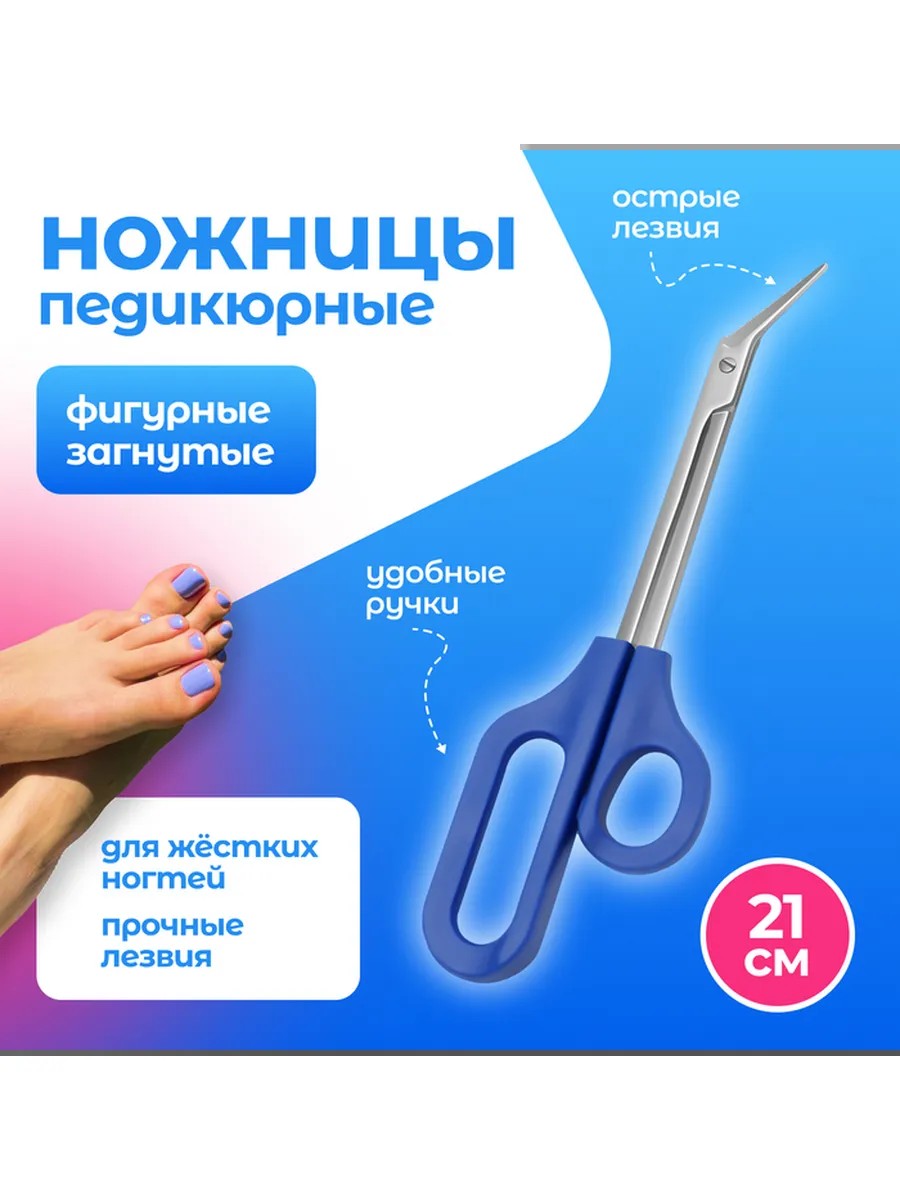 Педикюрные фигурные ножницы делают уход за ногтями более комфортным и безопасным. Удобная длинная ручка и изогнутое лезвие облегчают процедуру педикюра для пожилых людей, для людей с проблемами со здоровьем, лишним весом и ограниченными возможностями. Изделие изготовлено из надёжного и долговечного материала.