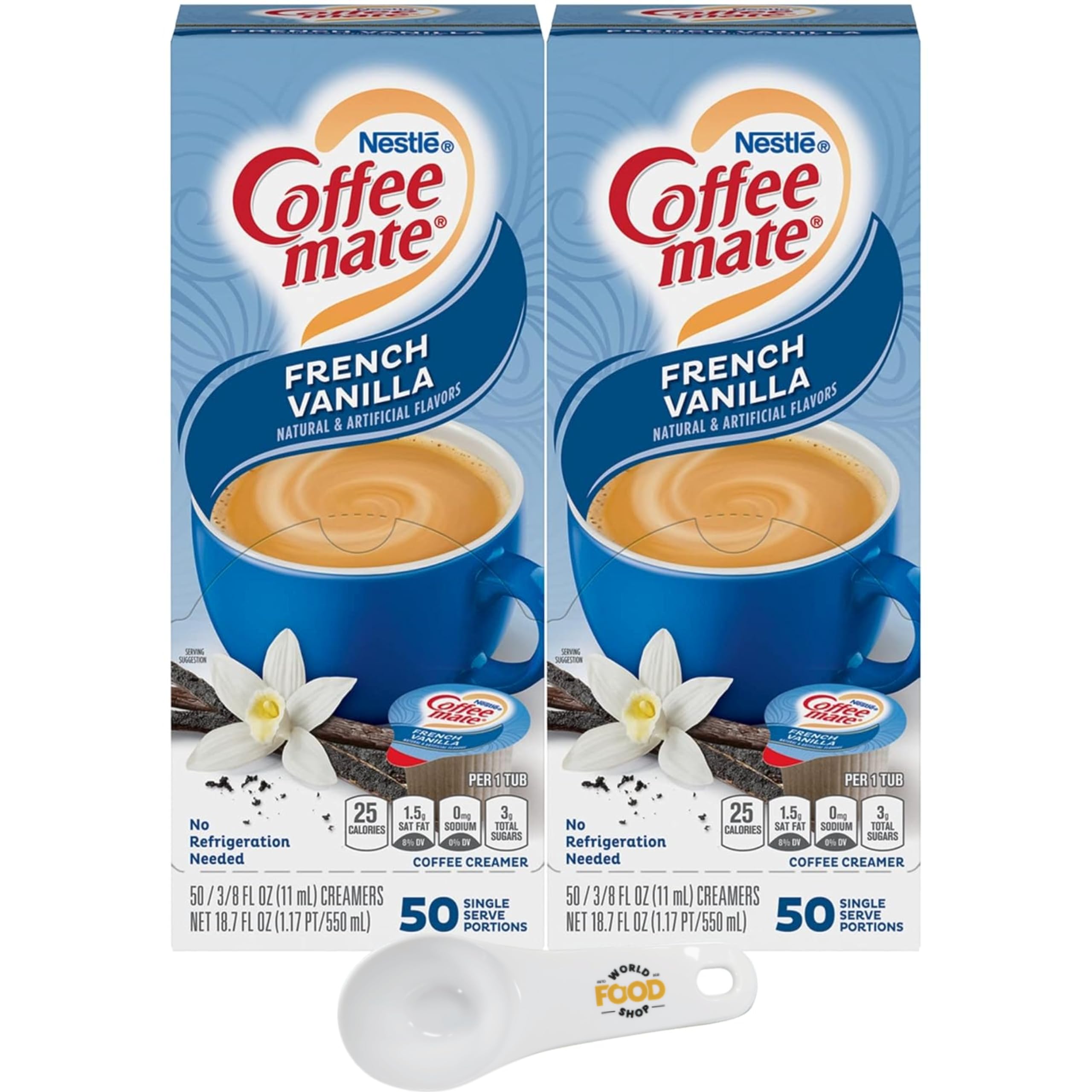Nestle Coffee mate Lot de 2 boîtes à café liquide à la vanille française avec cuillère World Food Shop 50 carats