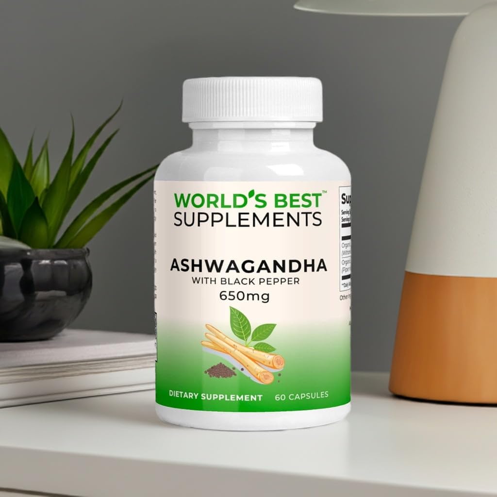 World's Best Supplements Organic Ashwagandha 650mg with Bioperine Black Pepper | 60 Capsules