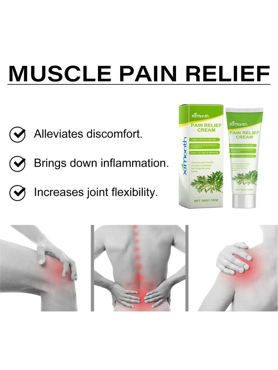 Ximonth Muscle and Bone Pain Relief Cream with Wormwood contains safflower extract, artemisia annua extract, and ginger root extract. It reduces joint discomfort, relieves joint and muscle pain, promotes joint tissue restoration, relaxes joints, and allows the body to fully rest.