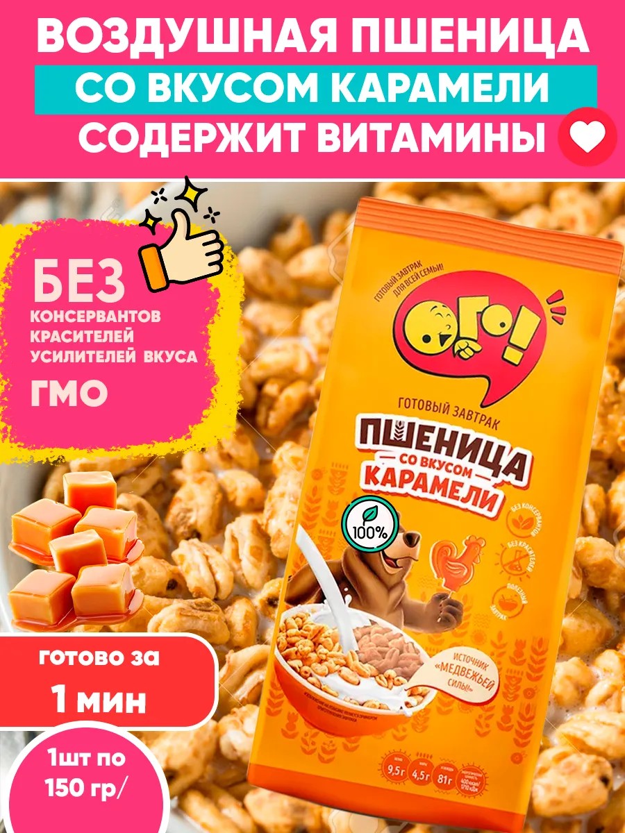 Puffed wheat with caramel "Ogo!" is a unique and delicious product that is sure to please all lovers of sweets and light snacks. This product is made from natural ingredients and does not contain GMOs, which makes it safe and healthy.