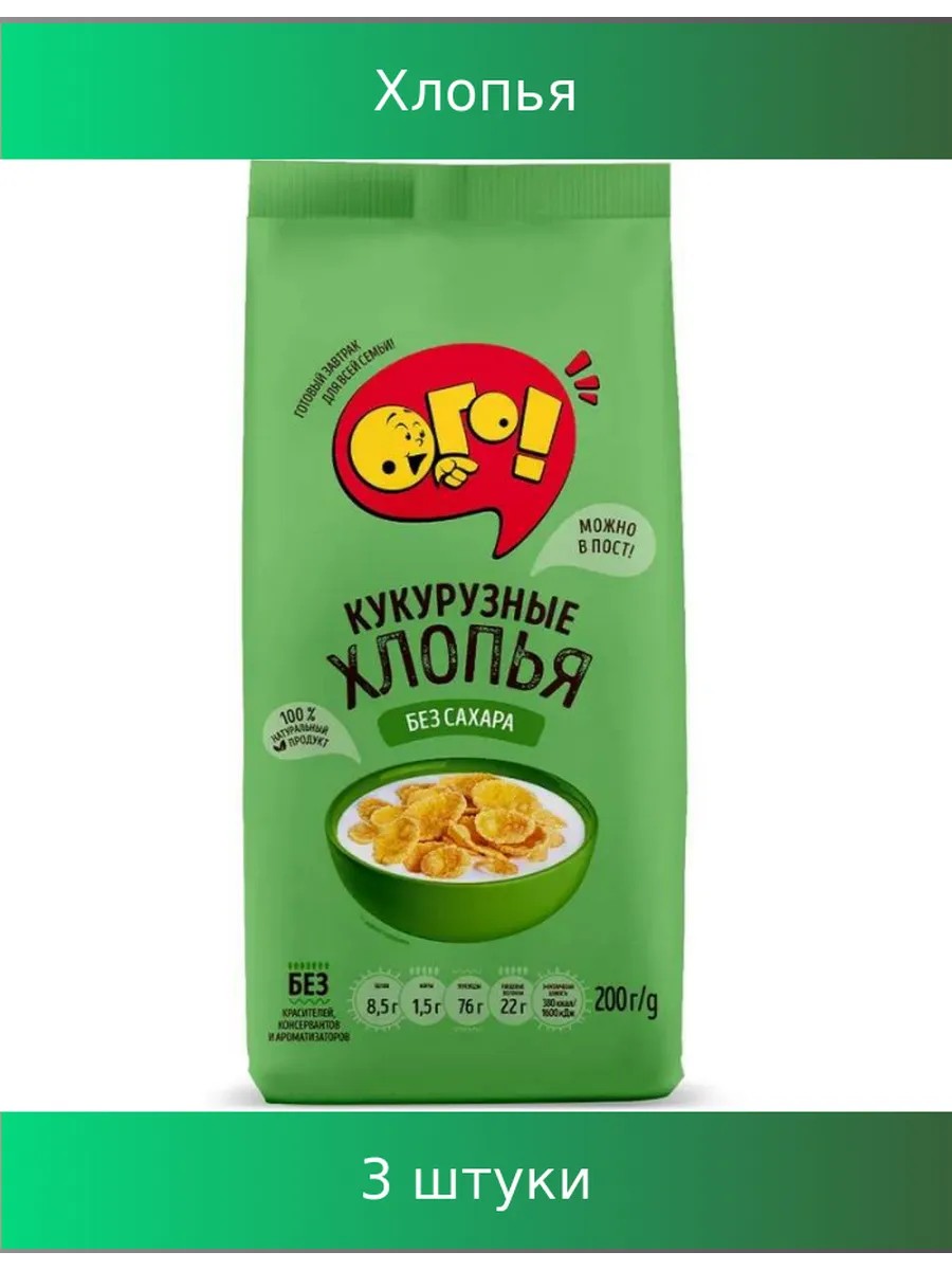 ОГО Хлопья ОГО! кукурузные без добавления сахара, 200г, 3 шт.