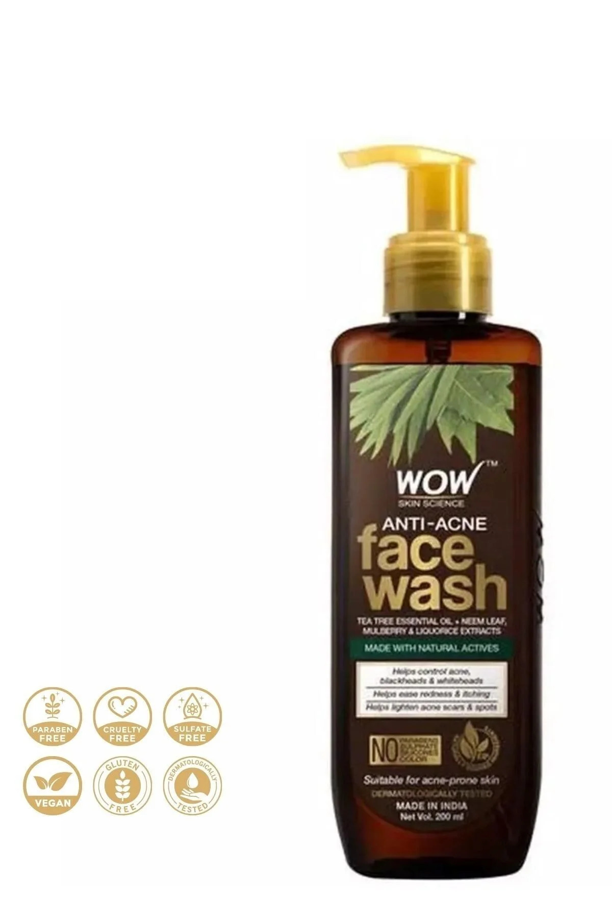 WOW Skin Science Anti-Acne Face Wash 200ml-88 Natural Ingredients - Oil-Free No Parabens No Sulfate No Silicones No Colors