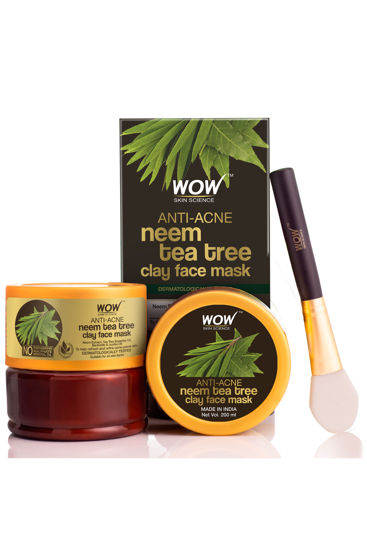 WOW Skin Science ANTI-ACNE NEEM AND TEA TREE CLAY FACE MASK - 9 Natural Ingredients
