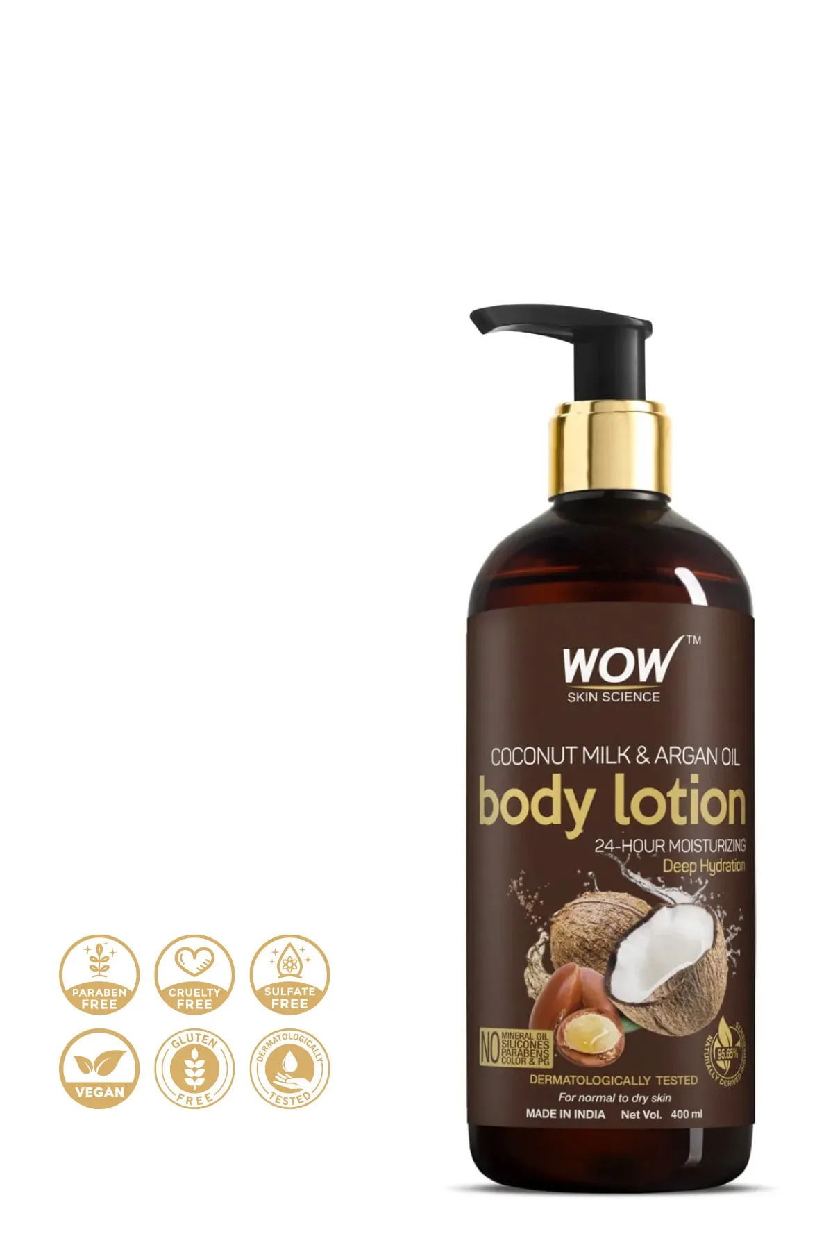 WOW Skin Science Coconut Milk & Argan Oil Body Lotion - 65 Natural Ingredients - Paraben & Silicone Free 400ml