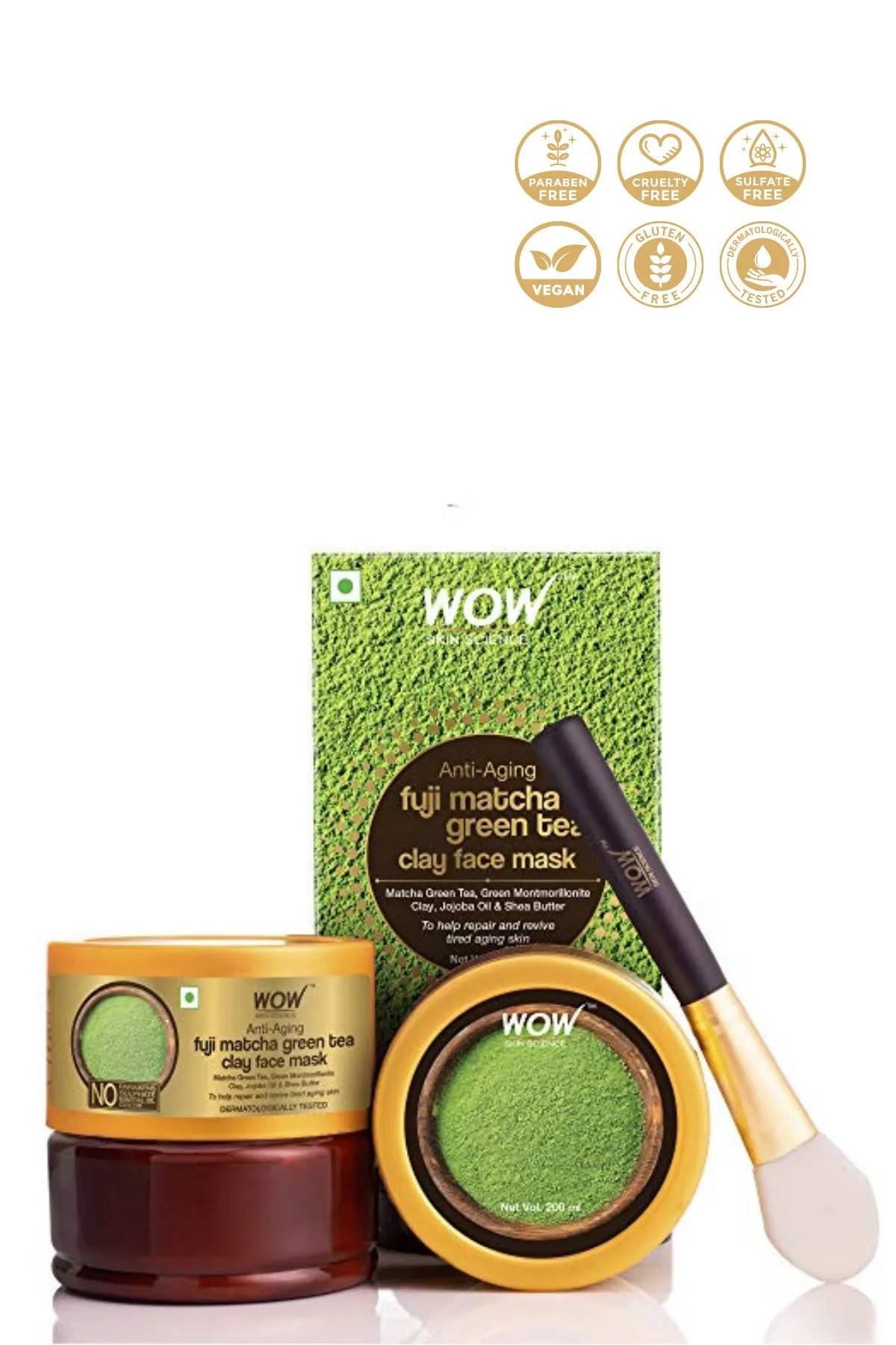 WOW Skin Science Fuji Matcha Green Tea Clay Face Mask - 2 Natural Ingredients - Anti-Aging 200 Ml