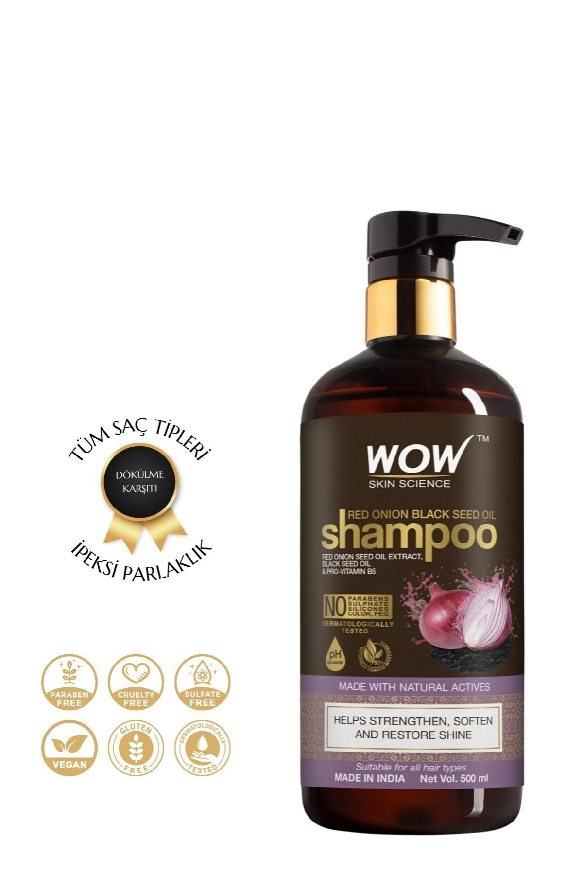 WOW Skin Science Red Onion Shampoo-Natural Ingredients-Hair Growth & Hair Fall Control 500ml