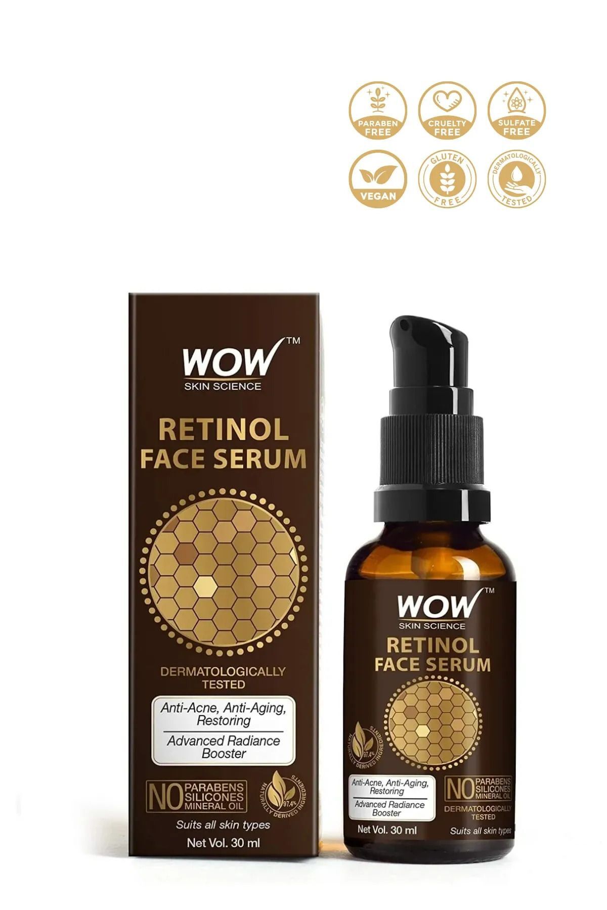 WOW Skin Science Retinol Serum - 4 Natural Ingredients Oil-Free Skin Plumper Anti-Acne Anti-Aging 30 ml