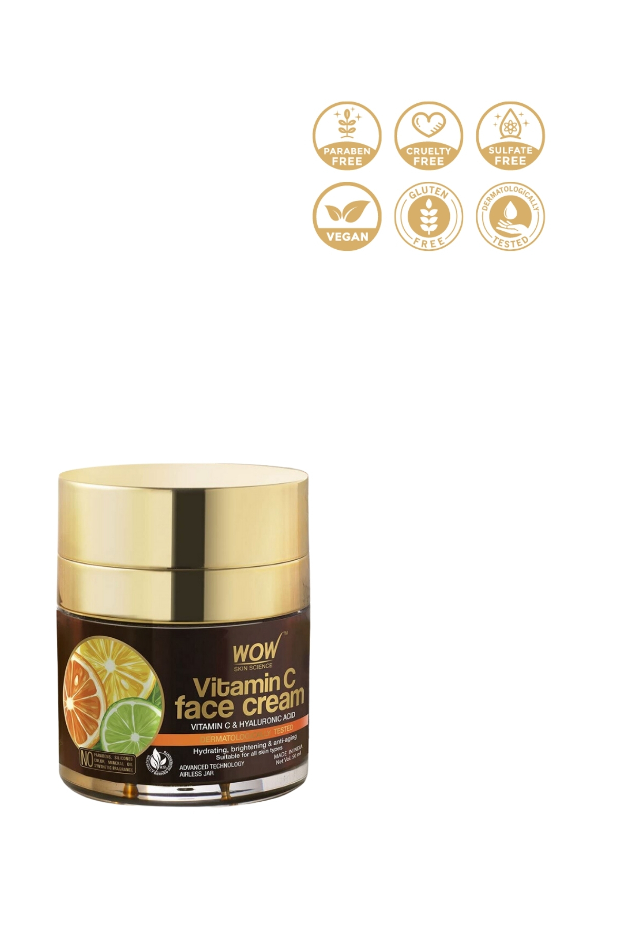 WOW Skin Science Vitamin C Face Cream - Natural Content - All Skin Types - Oil-free No Paraben Silicone Paint Mineral Oil 50ml