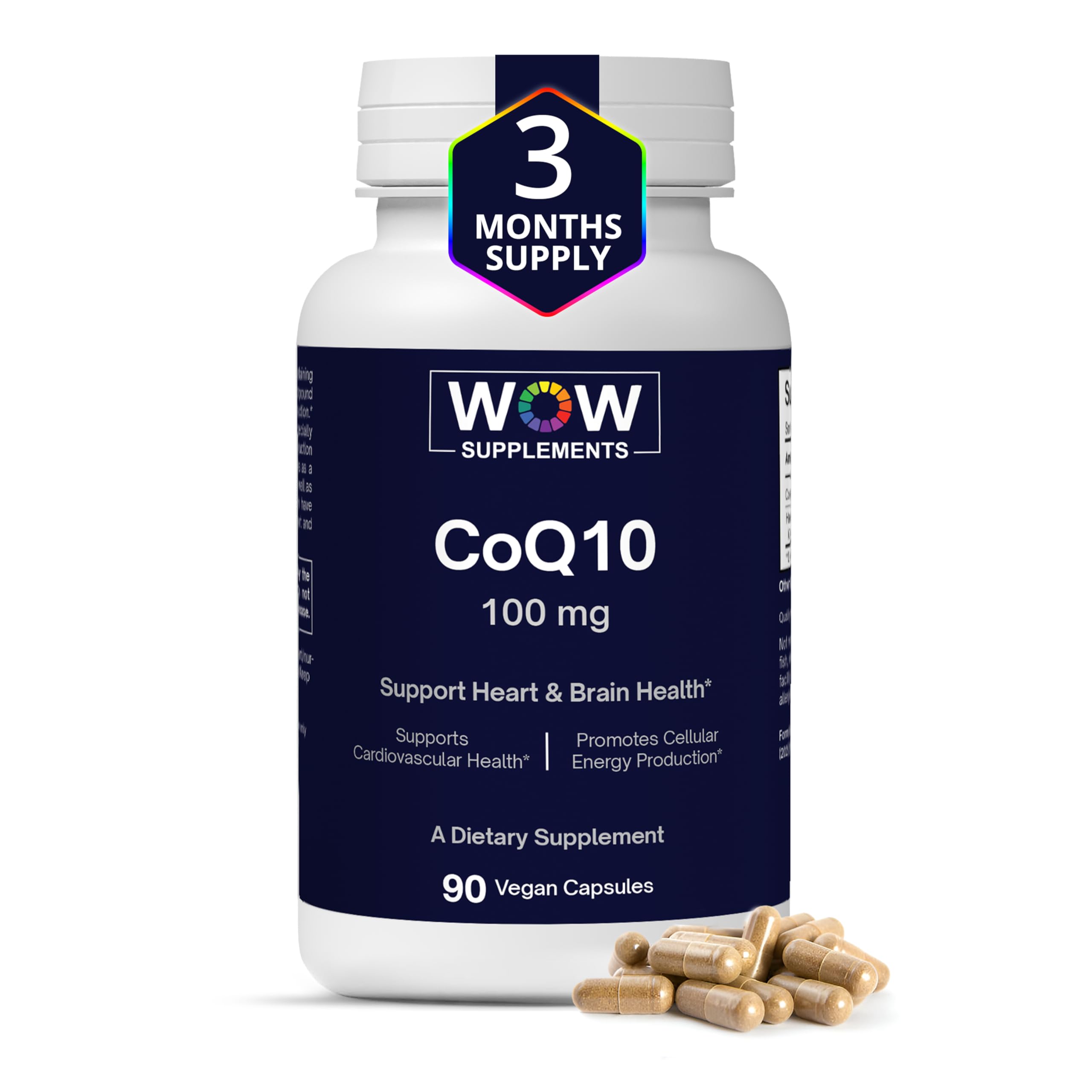 : Our CoQ10 100 mg capsules are pharmaceutical grade and produced tested in GMP-compliant facilities. WOW Supplements CoQ10 with Hawthorn Berry is a reliable coenzyme Q10 supplement that provides antioxidant support for cardiovascular health. - : WOW Supplements CoQ-10 100mg capsules are made from natural ingredients and are completely vegan, non-GMO, gluten-free, Halal, and keto-friendly. This CoQ10 supplement provides important antioxidant support as well as heart health benefits in a clean and pure formulation. : Our CoQ 10 100 mg capsules contain 400 mg of Hawthorn Berry per serving for increased absorption and improved Q10 coenzyme bioavailability. This vegan co enzyme q10 100mg formula is ideal for improving cellular health and giving energy support for everyday activities. : WOW Supplements CoQ10 100 mg has essential antioxidant properties that help protect cells from oxidation. This coenzyme Q10 100mg supplement promotes energy metabolism, making it an excellent option for overall health. : CoQ10 100mg capsules which include Hawthorn Berry, provide significant heart health support while increg the production of energy. This vegan CoQ10 supplement supports cardiovascular function and cellular wellness. This is ideal for people looking for a high absorption CoQ10 supplement.