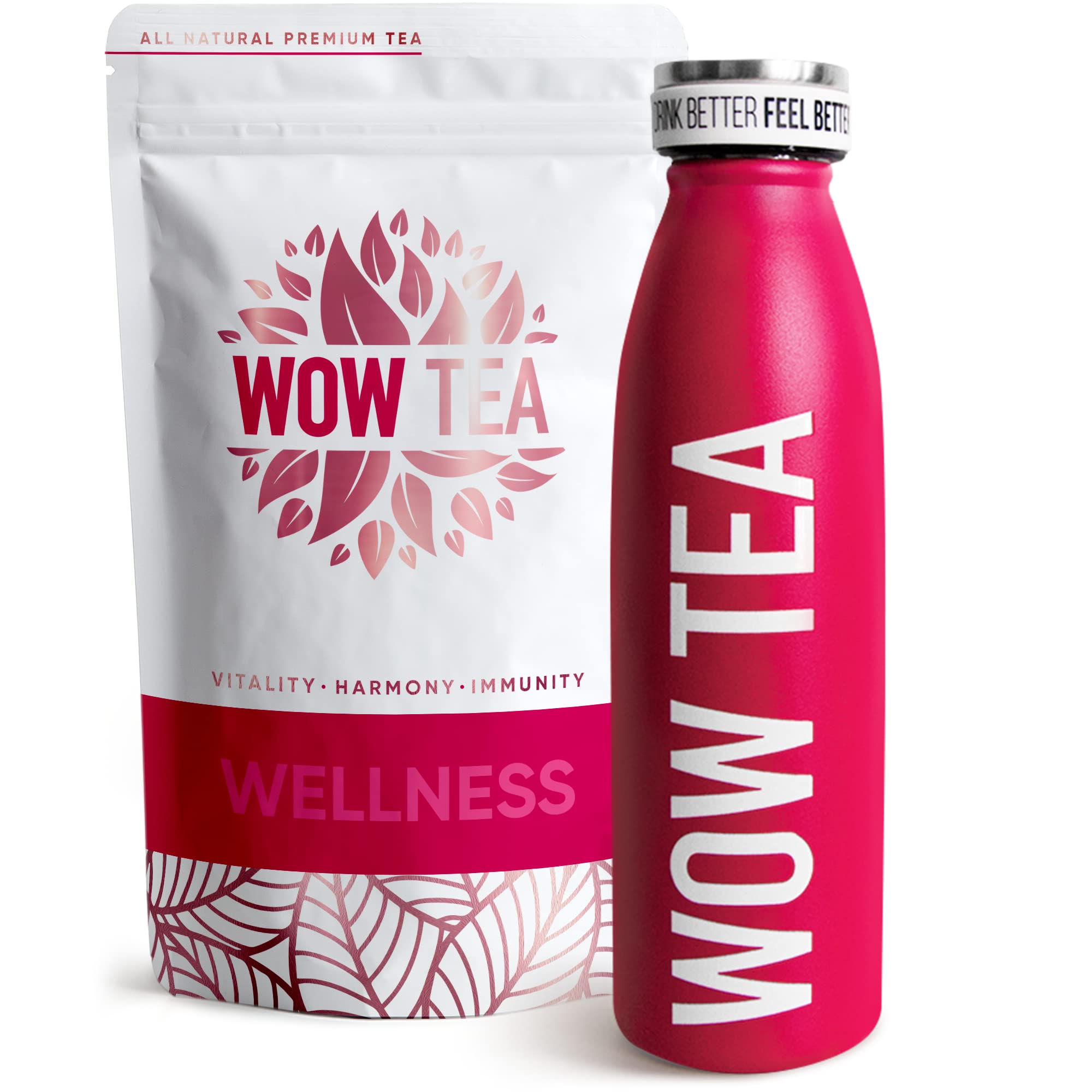 WOW TEA WOW TEA - Herbal Tea for Weight Loss | Detoxifying Tea - Body Cleansing and Bloating Relief | Ayurveda Wellness Tea + Tea Thermos with Infuser - 150g + 500ml | 100% Natural | Made in the EU