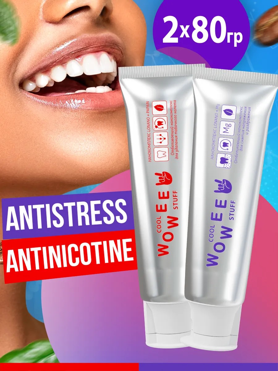 Отбеливающая зубная Антипаста ANTICRUSH с адаптивным интеллектом и натуральным составом обеспечивает доказанное бережное отбеливание и предотвращает разрушение зубов и десен. Средство для мужской и женской гигиены Wowee обеспечивает био - восстановление эмали и оказывает антибактериальное, противовоспалительное и укрепляющее действие. Комплексный состав создает долговременную защиту от кариеса, уменьшает кровоточивость десен и устраняет неприятные запахи, включая запах табака. Паста содержит уникальный и структурно схожий с эмалью нанокомплекс LONANO с метабиотиком ADP-1 и гидроксиапатитом. Он помогает устранить микротрещины эмали, способствует ее укреплению, реминерализации и восстановлению. PROPOLIS + CA - это комбинация ионов прополиса (натуральный природный антисептик и антибиотик) и активного кальция (восстановление твердых тканей зуба и эмали). Зубная паста с мятным вкусом подходит для ежедневного ухода за полостью рта, обеспечивает очищение зубного налета и удаление камня. Она поможет восстановить красоту и здоровье зубов, поддерживая естественную микрофлору слизистых оболочек. Профессиональная быстродействующая формула с отбеливающим эффектом подойдет для мужчин и женщин, девушек, парней и подростков с брекетами или коронками. Полезная и популярная формула с очищающим и защитным, восстанавливающим и освежающим действием поставляется в тюбике удобной формы, который можно брать в дорогу и путешествия. Уходовая и лечебная паста может применяться каждый день для гигиены взрослых членов семьи и детей от 12-ти лет. Это хороший выбор для глубокой очистки и свежести дыхания. Продукция удобна для домашнего и дорожного использования. В линейке бренда вы найдете комплекты из двух зубных паст с разными активными компонентами, включая отбеливающие формулы для чувствительных зубов, составы, усиленно защищающие от кариеса. У нас есть акции и распродажи, вы можете купить наши товары в подарок со скидкой! Оцените также наши десткие зубные пасты!
