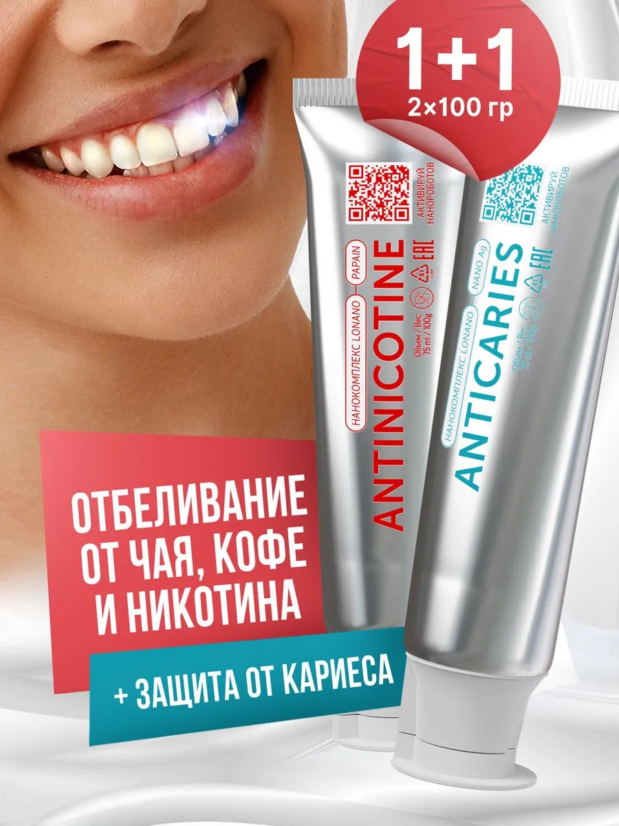 ANTINICOTINE — отбеливание и защита от никотина: инновационная паста, которая эффективно отбеливает зубы после употребления чая, кофе и никотина. Комплекс LONANO с метабиотиком ADP-1 и гидроксиапатитом способствует укреплению и реминерализации эмали, восстанавливая её структуру. Натуральный компонент PAPAIN помогает предотвратить образование налёта и камня, а также нейтрализует запах, оставшийся после курения.