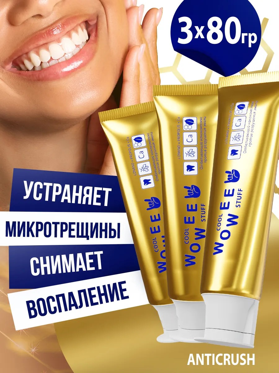 ANTICRUSH от Wowee — это уникальная зубная паста с адаптивным интеллектом и натуральным составом, обеспечивающая бережное отбеливание и защиту зубов и десен. Паста с инновационной формулой предотвращает разрушение зубной эмали, укрепляет её и поддерживает здоровье полости рта. Она идеально подходит для мужской и женской гигиены, обеспечивая надежную защиту от кариеса и воспалений.