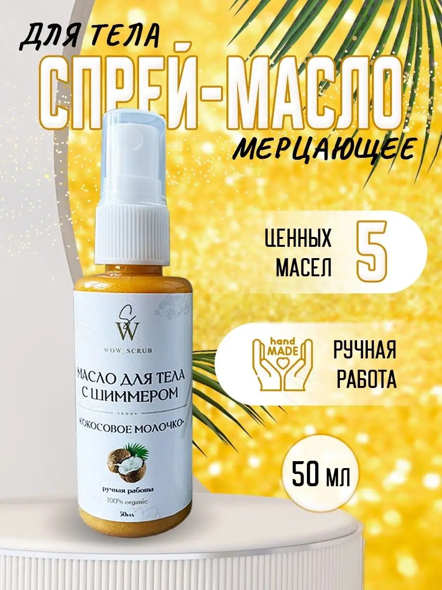 Ищите натуральные косметические масла с шиммером для мерцающего эффекта быстрого загара ?Наш бренд создает натуральную косметику с блестками в виде спрея с мерцанием . Косметическое масло парфюмированное с шимером - это новый уход за телом и кожей ручной работы с дозатором, который обеспечивает полный уход для красоты тела. Светящаяся текстура с эффектом загара прекрасно помогает бороться с растяжками, ускоряет регенерацию клеток, помогает предотвратить процессы старения, а так же тонизирует и смягчает кожу. Витамин Е - для красоты и упругости кожи, подарят ей увлажнение и блеск. Мерцающая коллекция станет отличным выбором для любимой девушки. Мерцающие витамины, антиоксиданты и масло виноградной косточки в составе средства отлично подходят в качестве профилактики против целлюлита, и сухости кожи. Золотой шиммер с ароматом "Кокосовое молочко" увлажняющий не вызывает раздражения и аллергических реакций.