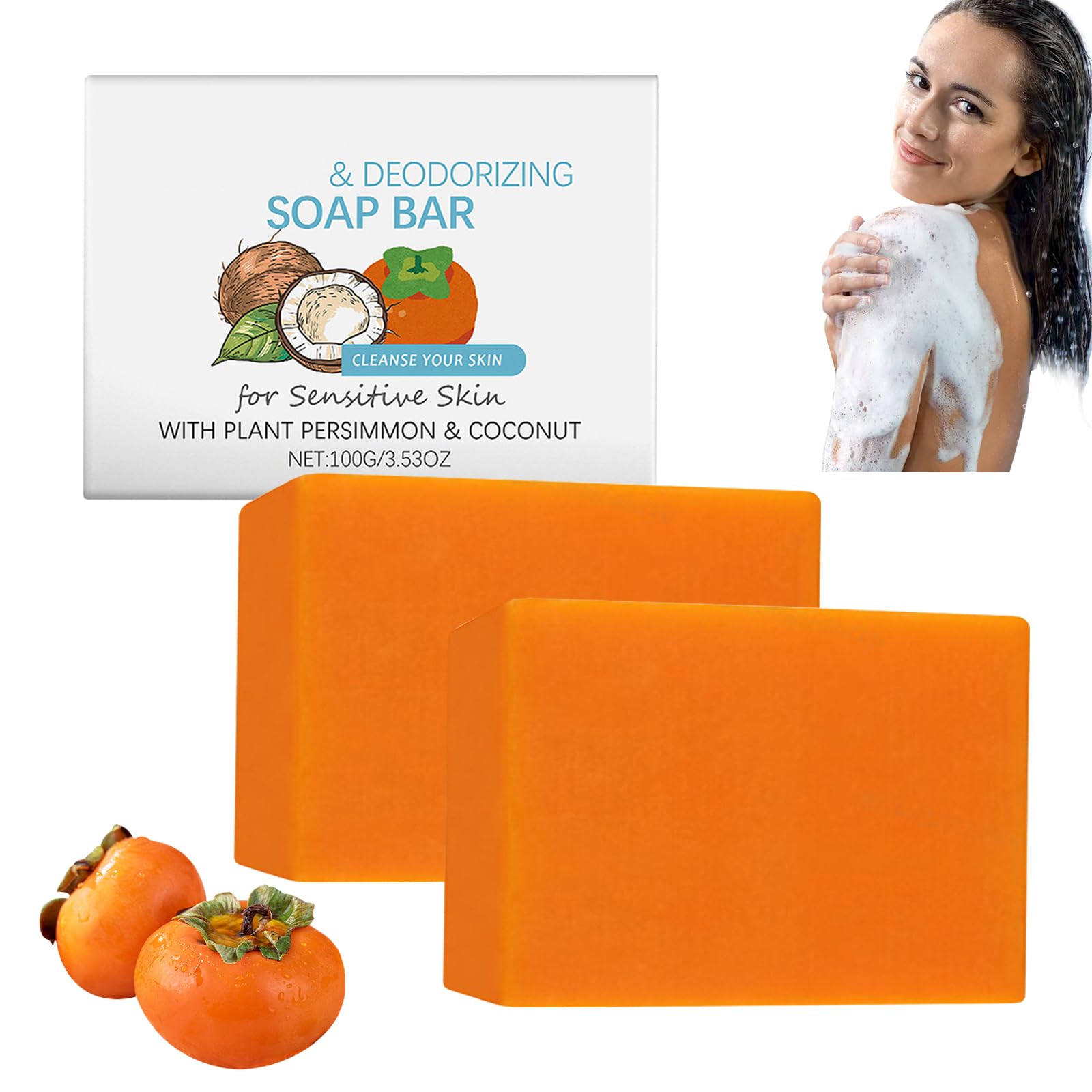 : Purifying and deodorizing soap with persimmon extract to eliminate body odor. Persimmon soap suitable for the elderly with body odor. Deodorizing body soap, gentle on sensitive skin. Eliminates body odor, moisturizes and refreshes the skin, leaving it supple and soft. Deep-cleansing bath soap for face and body, suitable for men and women. How to use: 1. Soak the soap in water and gently massage until a lather appears. 2. Apply the lather evenly to the skin. Gently massage in circular motions for 2 to 3 minutes and cleanse. Rinse with warm water. Specifications: Item Name: Coconut Persimmon Soap Net Contents: 100g Shelf Life: 3 years Package Contents: 2 3 5 Persimmon Coconut Soaps Note: 1. Please allow 1-2 cm error due to manual measurement. 2. The actual color of the item may vary slightly from the image due to differences in monitor settings and lighting. Thank you for your understanding. Customer Service: If you encounter any problems while purchg or using our products, please contact us promptly. We are available 24 7. SAFETY WARNING Store in a cool, dry place out of reach of children. For external use only. Avoid contact with eyes.5. Cleansing Experience : It not only eliminates body odor but also cleanses the skin. The rich lather removes surface oil and dirt, leaving skin feeling fresh and less tight. 4. Portable and Convenient Design : Thanks to its convenient size, it is easy to handle and carry, making it suitable for daily cleansing and deodorizing, whether at home or on the go. 3. Enhanced Ingredients: A blend of persimmon and coconut plant extracts naturally nourishes the skin while purifying and deodorizing for a gentle and nourishing experience. 2. Suitable for Most Skin Types : The gentle formula is suitable for most skin types and leaves skin feeling soft during cleansing. 1. Effective Body Odor Removal This persimmon soap deeply cleanses the skin and effectively eliminates all odors, even those common in older people, for both men and women. It leaves a feeling of freshness and comfort.Lot de 2 savons de bain à la noix de coco kaki, élimine les odeurs corporelles, gel douche déodorant pour le visage et le corps, nettoie et hydrate, doux et rafraîchit la peau, contre les odeurs 2 pièces.DESCRIPTION DU PRODUIT DESCRIPTION DU PRODUIT Description du produit: Savon purifiant et désodorisant à l'extrait de kaki pour éliminer les odeurs corporelles. Savon de kaki adapté aux personnes âgées ayant une odeur corporelle. Savon désodorisant pour le corps, doux pour les peaux sensibles. Élimine les odeurs corporelles, hydrate et rafraîchit la peau et rend la peau souple et douce. Savon de bain désodorisant en profondeur pour le visage et le corps, convient aux hommes et aux femmes. Comment utiliser: 1. Faites tremper le savon dans l'eau et massez doucement jusqu'à ce que la mousse apparaisse. 2. Appliquez la mousse uniformément sur la peau. Masser doucement en mouvements circulaires pendant 2 à 3 minutes et nettoyer. Rincer à l'eau tiède. Spécifications: Nom de l'article : savon coco kaki Contenu net : 100 g. Durée de vie : 3 ans. Contenu de l'emballage : 2 3 5 savons noix de coco kaki. Remarque : 1. Les mesures étant prises à la main, les tailles indiquées peuvent varier de 1 à 2 cm. 2. La couleur de l'article peut varier de celle de la photo, en fonction des paramètres d'affichage et de luminosité de votre ordinateur. Merci de votre compréhension. Service client : Si vous rencontrez des problèmes lors de l'achat ou de l'utilisation de nos produits, veuillez nous contacter à temps. Nous sommes là pour vous 24 heures sur 24. AVERTISSEMENT DE SÉCURITÉ Conserver dans un endroit frais et sec, hors de portée des enfants. Pour un usage externe uniquement. Évitez tout contact avec les yeux.5. Expérience de nettoyage : il élimine non seulement les odeurs corporelles, mais nettoie également la peau. La mousse riche élimine la graisse superficielle et la saleté et laisse la peau fraîche et moins tendue. 4. Design portable et pratique : Grâce à sa taille pratique, il est facile à manipuler et à transporter, ce qui le rend adapté pour le nettoyage quotidien et la désodorisation, que ce soit à la maison ou en déplacement. 3. Ingrédients améliorés : un mélange d'extraits végétaux de kaki et de noix de coco nourrit naturellement la peau tout en purifiant et désodorisant pour une expérience douce et nourrissante. 2. Convient à la plupart des types de peau : La formule douce convient à la plupart des types de peau et laisse une sensation de douceur pendant le nettoyage. 1. Élimination efficace des odeurs corporelles Ce savon de kaki nettoie la peau en profondeur et élimine efficacement toutes les odeurs, même celles des personnes âgées, pour hommes et femmes. Elle laisse une sensation de fraîcheur et de confort.