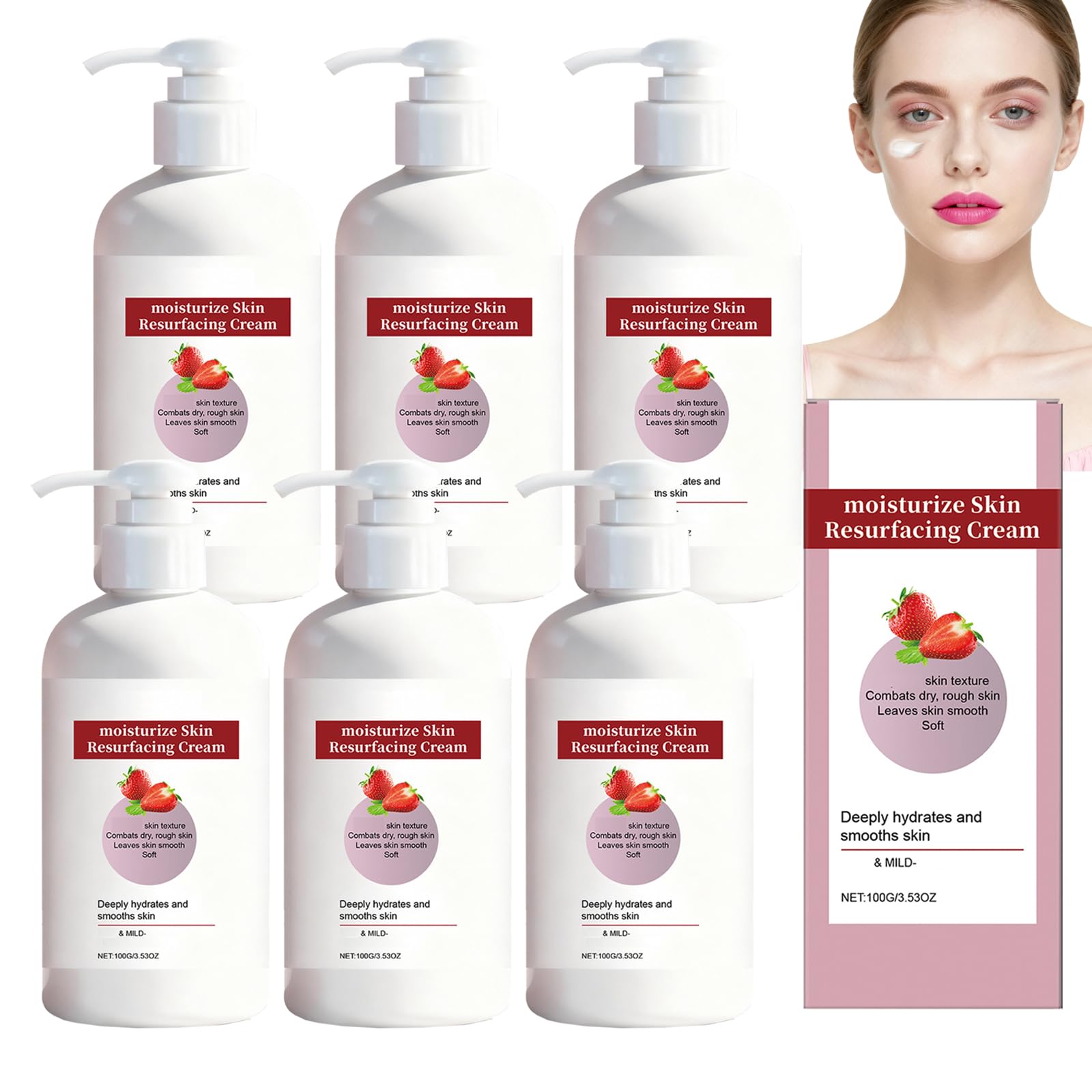 Strawberry moisture lotion for the body: moisturizes dry skin, improves skin structure, smoothes dry or rough skin. Suitable for face and body, daily use. Strawberry face cream – daily revitalizing cream that brightens the complexion and provides intensive moisture to the face, legs and neck. Strawberry moisturizer: suitable for all skin types, refreshing and non-greasy, quickly absorbed, firms the skin, reduces fine lines, for women and men. Usage: 1st Cleanse and dry your skin. 2nd Apply an appropriate amount evenly to your skin and massage gently until completely absorbed. Product name: moisturizing skin renewal cream Contents: 100g. Shelf life: 3 years Target group: adult women and men Delivery contents: 1 2 3 4 6 pieces moisturizing skin renewal cream. Note: 1st Please allow 1-2cm difference due to manual measurement. 2nd Due to the different monitor settings and lighting effect, the actual color of the item may be slightly different from the pictures. Thank you for your understanding. Customer service information: If you encounter any problems purchg or using our products, please contact us immediately. We are available for you around the clock. SAFETY WARNING Store cool and dry, out of the reach of children. For external use only. Avoid contact with the eyes.Elasticity and radiance: this facial cream with strawberries not only hydrates intensively, but also promotes skin elasticity and gives the skin a radiant, fresh complexion. With regular use, the skin appearance can improve. Light and non-greasy: this light moisturizer is suitable for all skin types. It is quickly absorbed, non-greasy and can be easily integrated into daily skin care in the morning and evening. It can also be used after showering and is suitable for both women and men. Suitable for different body areas: suitable for face and body. This strawberry moisture lotion is a versatile body lotion for rough skin and is suitable for face, legs, arms and neck. It cares for dry, rough skin all over the body and makes it even, soft and supple. Refines the skin structure: as a strawberry skin cream, it is ideal for rough and uneven skin. After use the skin is smooth and soft. It is the ideal daily care for rough skin and contributes to an even skin appearance. Strawberry skin renewal cream: intensively moisturizes dry, rough skin. This strawberry moisturizer has been specially developed for dry skin. It penetrates deep into the skin, stores moisture and provides long-lasting hydration.Aardbeien-huidvernieuwingscrème, hydrateert en verzorgt droge of ruwe huid, aardbeien-gezichtscrème, intensieve vochtverzorging voor gezicht en hals, 100 g (6 stuks) 6 stuks. Aardbeien-vochtlotion voor het lichaam: hydrateert droge huid, verbetert de huidstructuur, maakt de droge of ruwe huid glad. Geschikt voor gezicht en lichaam, dagelijks gebruik. Aardbeien-gezichtscrème – dagelijkse revitaliserende crème die de teint lichter maakt en gezicht, benen en hals intensief van vocht voorziet. Aardbeien-moisturizer: geschikt voor alle huidtypes, verfrissend en niet vettig, trekt snel in, verstevigt de huid, vermindert fijne lijntjes, voor dames en heren. Gebruik: 1ste Reinig en droog je huid. 2de Breng een geschikte hoeveelheid gelijkmatig aan op je huid en masseer deze zachtjes tot deze volledig is opgenomen. Productnaam: vochtinbrengende huidvernieuwende crème Inhoud: 100 g. Houdbaarheid: 3 jaar Doelgroep: volwassen vrouwen en mannen Inhoud levering: 1 2 3 4 6 stuks vochtinbrengende huidvernieuwingscrème. Opmerking: 1ste Houd rekening met een verschil van 1-2 cm vanwege handmatige meting. 2de Vanwege de verschillende beeldscherminstellingen en het lichteffect kan de werkelijke kleur van het artikel enigszins afwijken van de afbeeldingen. Bedankt voor je begrip. Informatie over de klantenservice: Als u problemen ondervindt bij de aankoop of het gebruik van onze producten, neem dan onmiddellijk contact met ons op. Wij staan de klok rond voor je klaar. VEILIGHEIDSWAARSCHUWING Koel en droog bewaren, buiten het bereik van kinderen. Alleen voor uitwendig gebruik. Vermijd contact met de ogen.Elasticiteit en straling: deze gezichtscrème met aardbeien hydrateert niet alleen intensief, maar bevordert ook de huidelasticiteit en geeft de huid een stralende, frisse teint. Bij regelmatig gebruik kan het huidbeeld verbeteren. Licht en niet vetend: deze lichte vochtinbrengende crème is geschikt voor alle huidtypes. Hij trekt snel in, is niet vet en kan probleemloos in de dagelijkse huidverzorging 's ochtends en 's avonds worden geïntegreerd. Hij kan ook na het douchen worden gebruikt en is geschikt voor zowel vrouwen als mannen. Geschikt voor verschillende lichaamsgebieden: geschikt voor gezicht en lichaam. Deze aardbeien-vochtlotion is een veelzijdige bodylotion voor ruwe huid en is geschikt voor gezicht, benen, armen en hals. Het verzorgt de droge, ruwe huid over het hele lichaam en maakt het gelijkmatig, zacht en soepel. Verfijnt de huidstructuur: als aardbeienhuidcrème is hij ideaal voor ruwe en ongelijkmatige huid. Na gebruik is de huid glad en zacht. Het is de ideale dagelijkse verzorging voor ruwe huid en draagt bij aan een gelijkmatig huidbeeld. Aardbeien-huidvernieuwingscrème: hydrateert droge, ruwe huid intensief. Deze aardbeienmoisturizer is speciaal ontwikkeld voor de droge huid. Het dringt diep in de huid door, slaat vocht op en zorgt voor langdurige hydratatie.