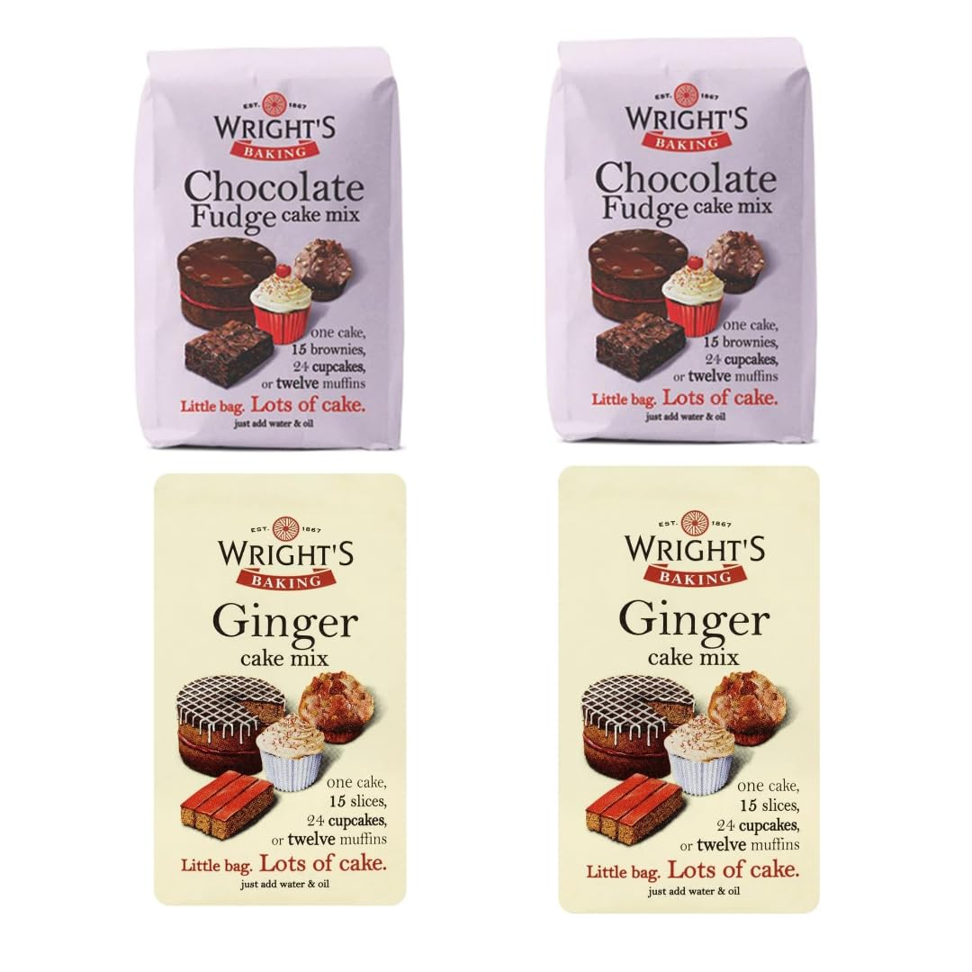 Wright's Baking Cake Mix Selection Pack Chocolate Fudge & Ginger Cake Mix X 2 | can be used to bake light & moist cakes slices muffins or cupcakes