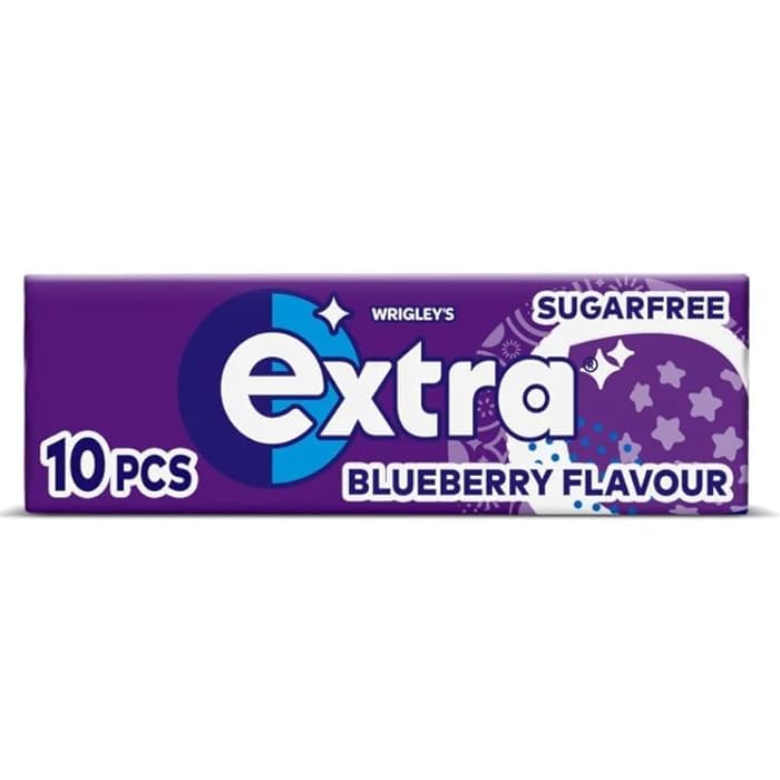 Wrigley's Extra Chewing Gum (Pack Of 20) Blueberry Flavour Sugar Free Helps keep Teeth Clean And Mouth Fresh INGREDIENTS Sweeteners Xylitol, Sorbitol, Mannitol, Aspartame, Acesulfame K, Gum Base, Thickener Gum Arabic, Humectant Glycerol, Acid Citric Acid, Flavourings, Emulsifier Soya Lecithin, Acid Fumaric Acid, Glazing Agent Carnauba Wax, Antioxidant BHAIngredients Sweeteners Xylitol, Sorbitol, Mannitol, Aspartame, Acesulfame K, Gum Base, Thickener Gum Arabic, Humectant Glycerol, Acid Citric Acid, Flavourings, Emulsifier Soya Lecithin, Acid Fumaric Acid, Glazing Agent Carnauba Wax, Antioxidant BHA. Chewing gum helps to reduce stress, improve focus, and aid in digestion, contains Xylitol, which has been shown to help reduce the risk of tooth decay. Convenient package size is easy to carry in a purse, backpack, or pocket, can be enjoyed after meals to freshen breath and prevent cavities. Sugar-free formula is great for those watching their sugar intake or following a low-carb diet. A bit of self-assurance goes a long way on a date, so don’t let bad breath disrupt your romantic rendezvous. Start by sharing a little piece of confidence to get any date off to a great start with Extra. Breathe out nothing but positivity. For confidence in chewable form, try Extra after meals and get that reliable fresh breath feeling all day. Even if you chose the garlic mayo at lunchtime. Sugarfree chewing gum pieces bursting with a delicious blueberry flavour.