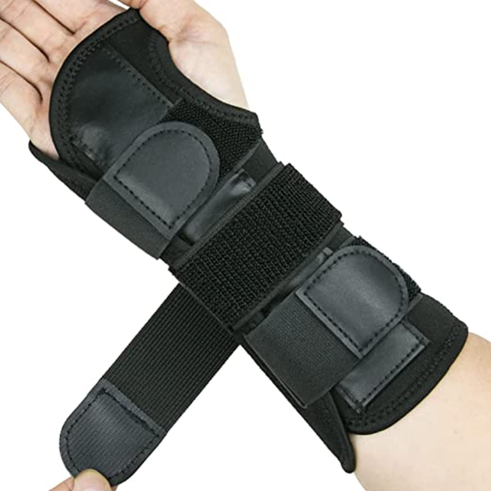 What is a wrist splint for? A good wrist splint will apply gentle pressure without inhibiting wrist movement. It keeps the wrist in a neutral or resting position. This neutral position minimizes stress and stress on joints and tissues. When do you wear a wrist splint? Splints, braces, and supports are designed to reduce the risk of injury that may be aggravated by using a joint or limb. Wrist braces can help rest muscles, protect joints, and prevent compression of tissues such as nerves. No one wants to toss and turn and toss and turn because of wrist pain. If you're currently struggling to get more blissful sleep time, why not try our wrist braces as your trusted carpal tunnel brace night support. Common uses: carpal tunnel syndrome strains and sprains wrist neuralgia wrist fracture hand joint pain Tendonitis and Arthritis Pain muscle and joint pain wrist pain Numbness in the hand, soft tissue injury Top reasons to use a medical-grade wrist splint Sports - Tennis, golf, and certain positions like baseball pitcher, football quarterback, or football goalie are very hard on the bones and joints.100 Satisfaction Money Back Guarantee?If Carpal Tunnel Syndrome or other wrist condition is causing you pain and anxiety day and night, you desperately need a change. Our Premium Carpal Tunnel Bracers may be the right choice for your wrist. We guarantee you will love this carpel tunnel brace or get a full refund!. ?NEWLY UPGRADED OPTIMIZATION FOR MORE FUNCTIONAL ADVANTAGES? This wrist brace's 3 adjustable pressure straps are designed for soothing ligaments and promoting blood circulation, while 2 strong plates for stabling bones and supporting palm. ?EASY TO USE, REDUCE ANXIETY AND IMPROVE LIFE QUALITY? No one wants tossing, turning, struggling through the night from wrist pain. No excess plastic hoop, no feel of stabbing and no bulkiness, this wrist brace right hand fits your right wrist all around providing the best protection and maximize the comfort of the wrist. ?PREMIUM MATERIALS USER-FRIENDLY STRUCTURE? FOR STRONG WRIST SUPPORT STABILIZATION. This wrist brace has flexible and breathable inner surface with fine stitching, bringing you wonderful tactile impression and durability. Double premium ergonomic removable plates help strongly support your wrist. ?ERGONOMIC DESIGN FOR MULTIPURPOSE? This ergonomic wrist splint is suitable for variety of wrist support, daily protection, pain relief or avoiding secondary injury. Especially for relieving the pain of Carpal Tunnel Syndrome, Carpal Neuralgia, Tendinitis Arthritis, Wrist Fractures, Soft Tissue Injuries, Strains Sprains, Post-Cast Wrist Pain, etc.