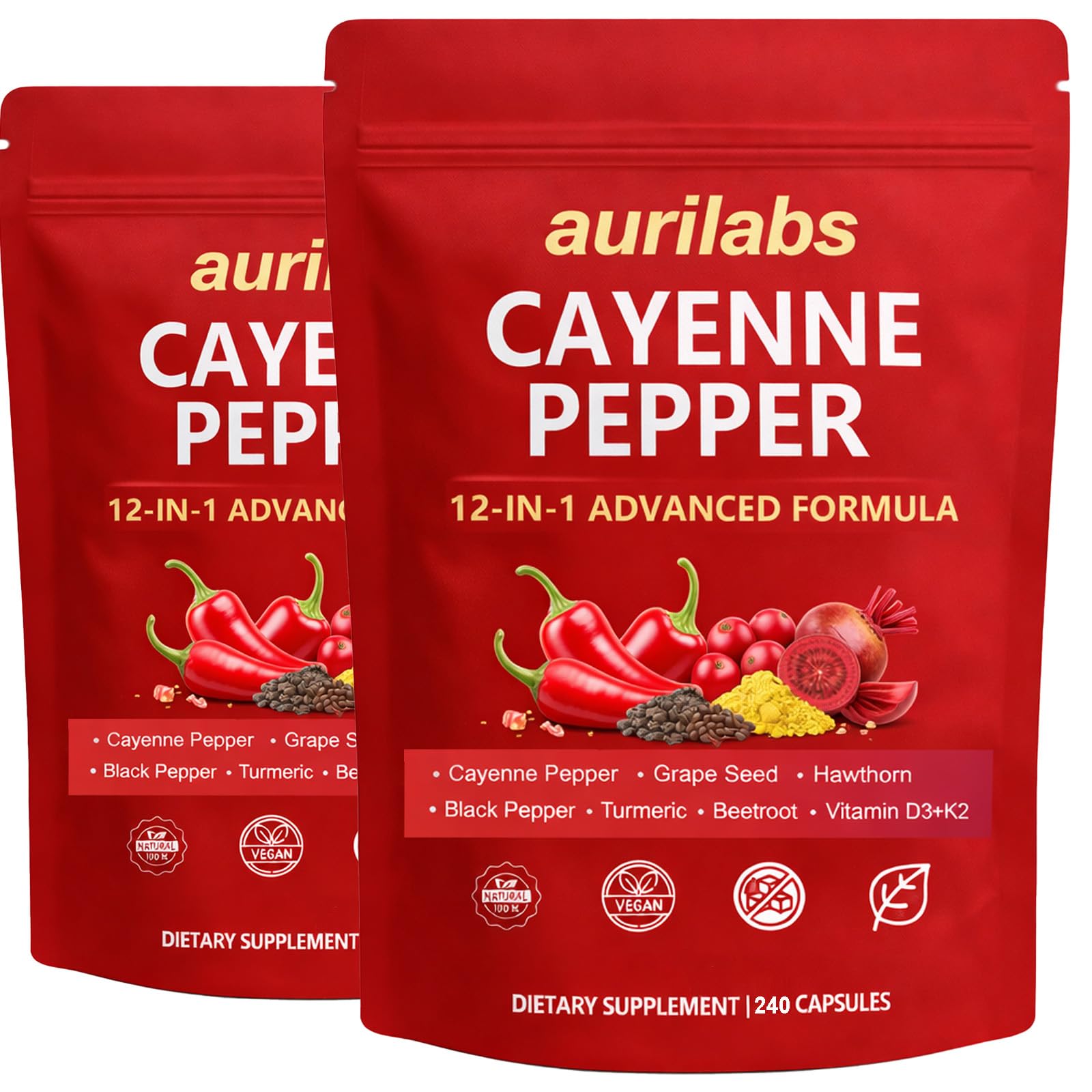 WSJAWH Aurilabs Cayenne Pepper softgels - Vitamin D3+K2 Complex Circulation Support Formula with Capsaicin & Botanicals Vegetarian Non-GMO Softgels for Daily Wellness (2)
