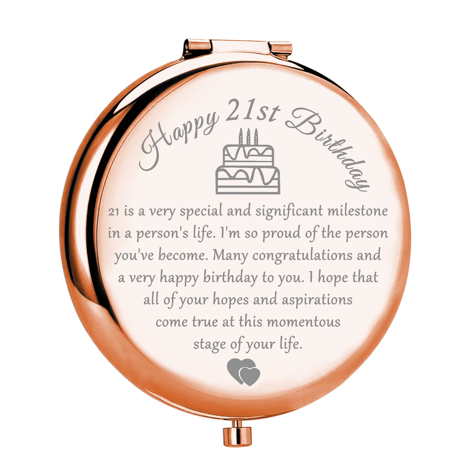 ?WELCOME TO WSNANG JEWELRY ?-Give you the best shopping experience. Features: a. Truly elegant and breathtaking design looks gorgeous and amazing. b. Easy to match and suitable for any style of clothes. c. Great in detail and good for your personal jewelry collection. d. Perfect for all occasions: anniversary, engagement, party, meeting, dating, wedding, daily wear, etc. Jewelry Maintenance: a. Keep it dry and avoid wearing it when bathing, doing housework and swimming. b. Perfume is also corrosive to jewelry. Wear your perfume before putting on the piece. c. Grease and sweat on hands will caused corrosion. Be careful. d. Rub your Jewelry with baby wipes,they perform miracles on jewelry without damaging the surface, then rub with a clean dry soft cotton cloth to bring back the shine. Please contact us if you have any questions.?Package:The compact mirror will come packaged in a high quality box ready to be given as the perfect gift. Any quality problems, please feel free to contact us. ?Material & Size:This compact mirror is portable and lightweight, the mirror shell is made of iron, which is hard and not easily deformed and does not fade. Size: 2.6 x 0.4 x 2.8 inches. ?Makeup mirror engraved with the lettering: Happy 21st Birthday. 21 is a very special and significant milestone in a person's life. I'm so proud of the person you've become. Many congratulations and a very happy birthday to you. I hope that all of your hopes and aspirations come true at this momentous stage of your life. ?Double-sided portable mirror: One side is reflective, which can accurately ensure that your lipstick, eye makeup and hairstyle are intact, and the other side is a magnifying glass, which can see your perfect makeup as a whole and take care of every detail perfectly. ?Portable & Compact:This mirror is foldable, portable and elegant design makes this small mirror easy to fit into your pocket, purse, handbag, makeup bag.A very useful mirror for women of all ages.Date First Available: September 8, 2022. Best Sellers Rank: #991,659 in Beauty & Personal Care. Country of Origin: China. : B0BDLWK1WM. Manufacturer: WSNANG. Item Weight: 1 pounds. Assembly Required: No. Frame Type: Framed. Material: Iron-21st milestone Mirror. Number of Pieces: 1. Theme: Wedding. Color: Rose Gold. Special Feature: Portable, Lightweight, Foldable. Mounting Type: Floor Mount. Frame Material: Glass, Iron. Product Dimensions: 2.8"L x 3"W. Shape: Round. Brand: WSNANG.