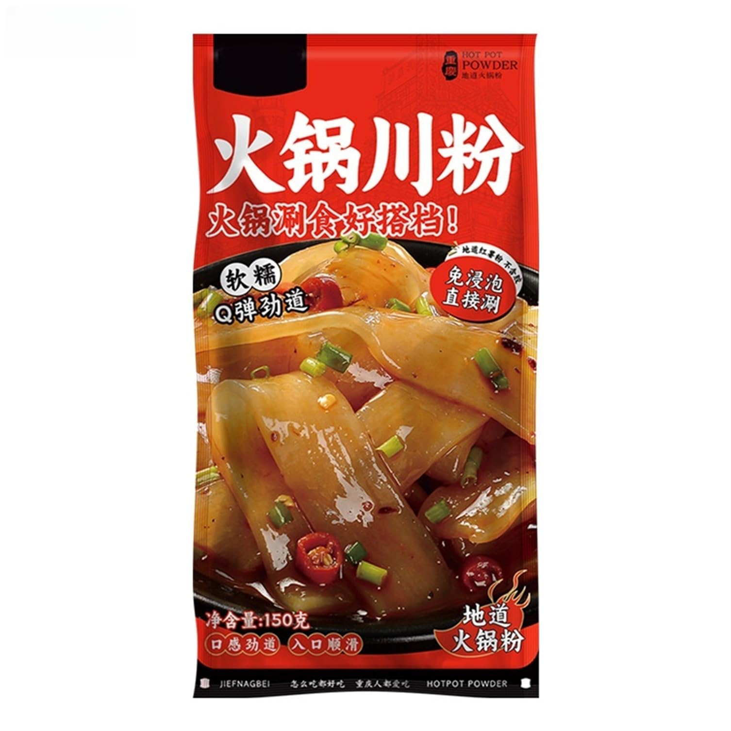 Hot Pot Szechuan Vermicelli is a classic side dish originating from Szechuan. It is made from sweet potato starch. It has a soft, elastic texture and a high capacity for absorbing flavors. It can perfectly absorb the spicy and fresh flavor of the hot soup base. It can be used with spicy casseroles and is also suitable for Szechuan snacks such as hot and sour noodles and maocai. It is a best-seller in Asian supermarkets and on e-commerce platforms. Product Name: Szechuan Hot Pot Vermicelli Production Date: See packaging (packaging indicates the product's production date). Product Specifications: 150g batch Shelf Life: 300 days Storage Method: Store in a cool, dry place INGREDIENTS Starch