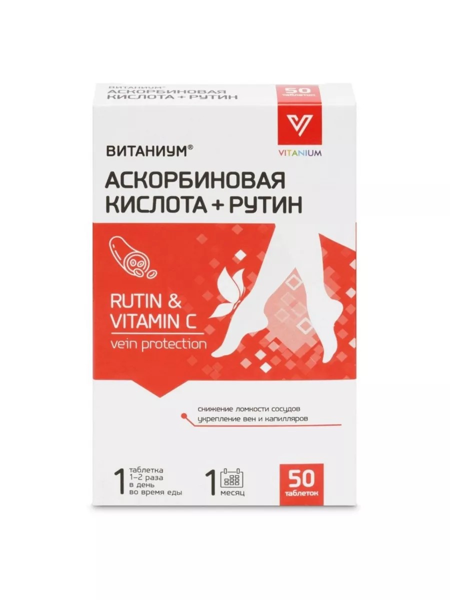 VITANIUM Ascorbic acid + rutin is a complex of venotonic and capillary-protective nutrients that help strengthen blood vessels and reduce their fragility.