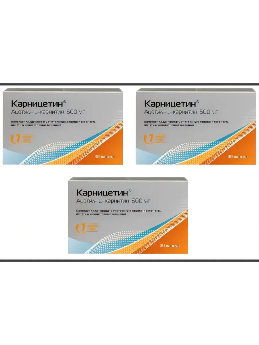 Карницетин Ацетил L-карнитин, 30 капсул х 3 уп