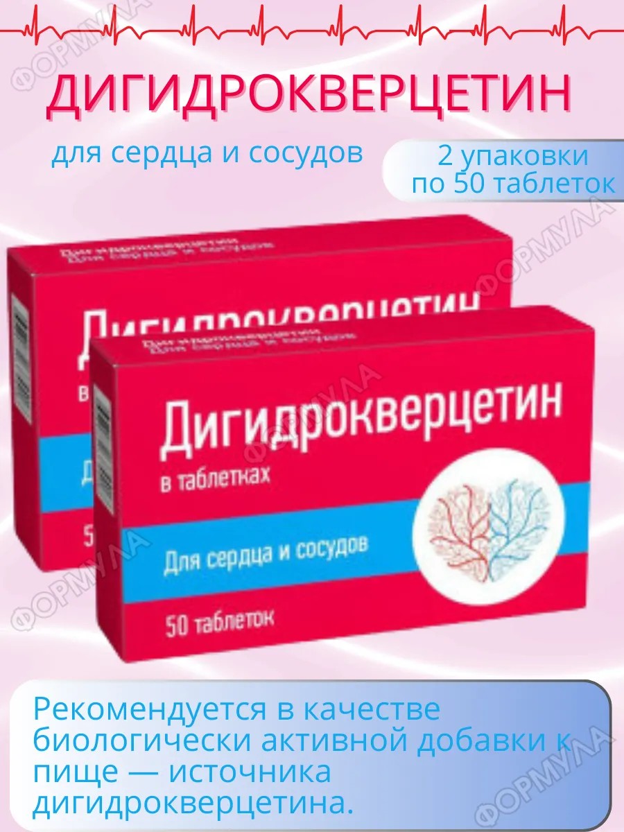 | Комплектация | Дигидрокверцетин таблетки для сердца и сосудов-2 упаковки по 50 таблеток |