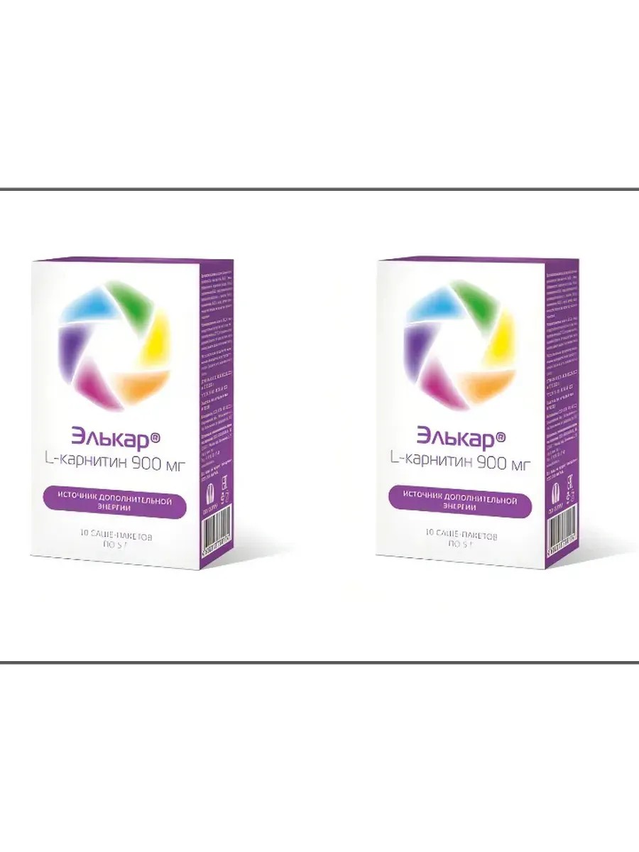 Элькар (L-карнитин 900 мг), 10 саше-пакетов по 5 г х 2 уп