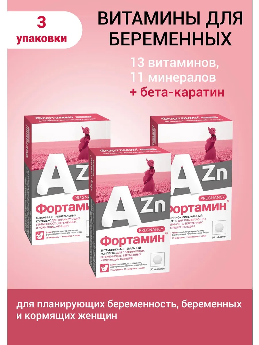 ФОРТАМИН для беременных и кормящих женщин: - содержит безопасную форму витамина А — бета-каротин;