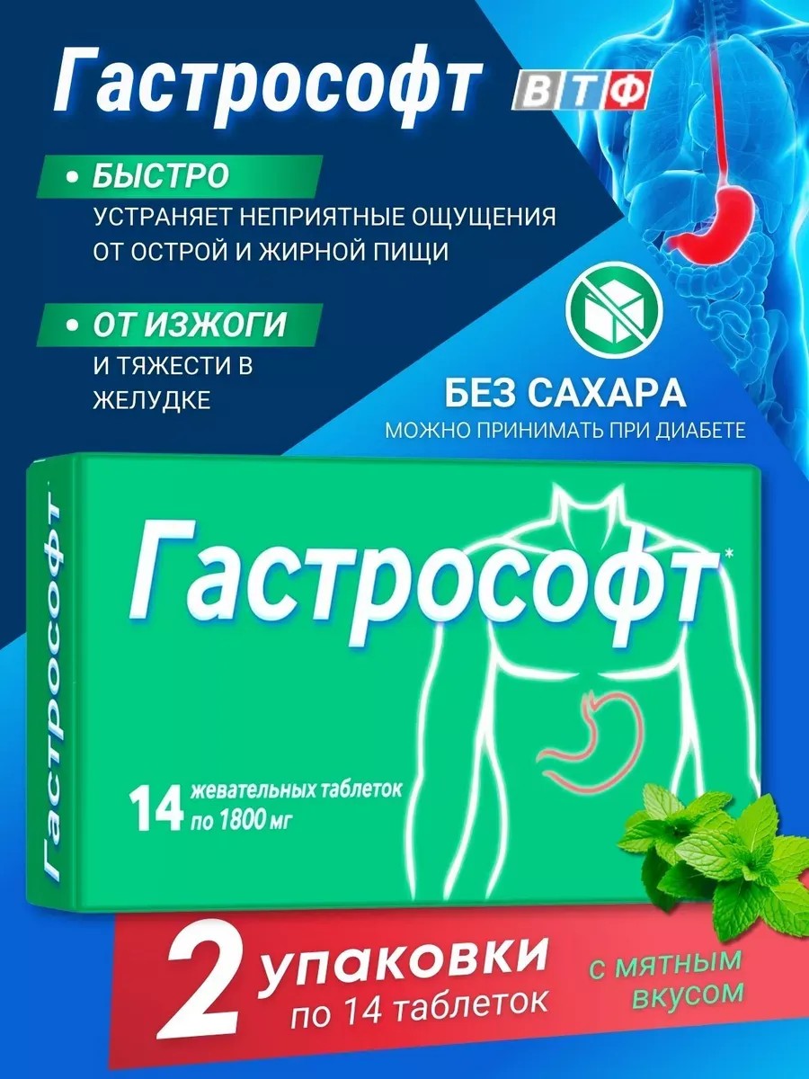 Гастрософт средство от изжоги 1800мг №14 2 уп