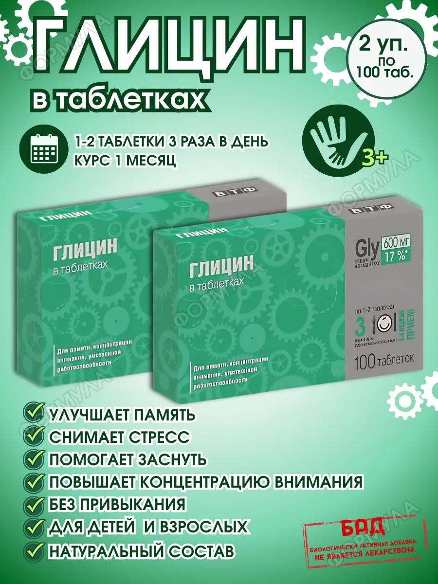 ВТФ Глицин: ключ к здopoвью мозга и иmmyнитета 100таб.*2уп.