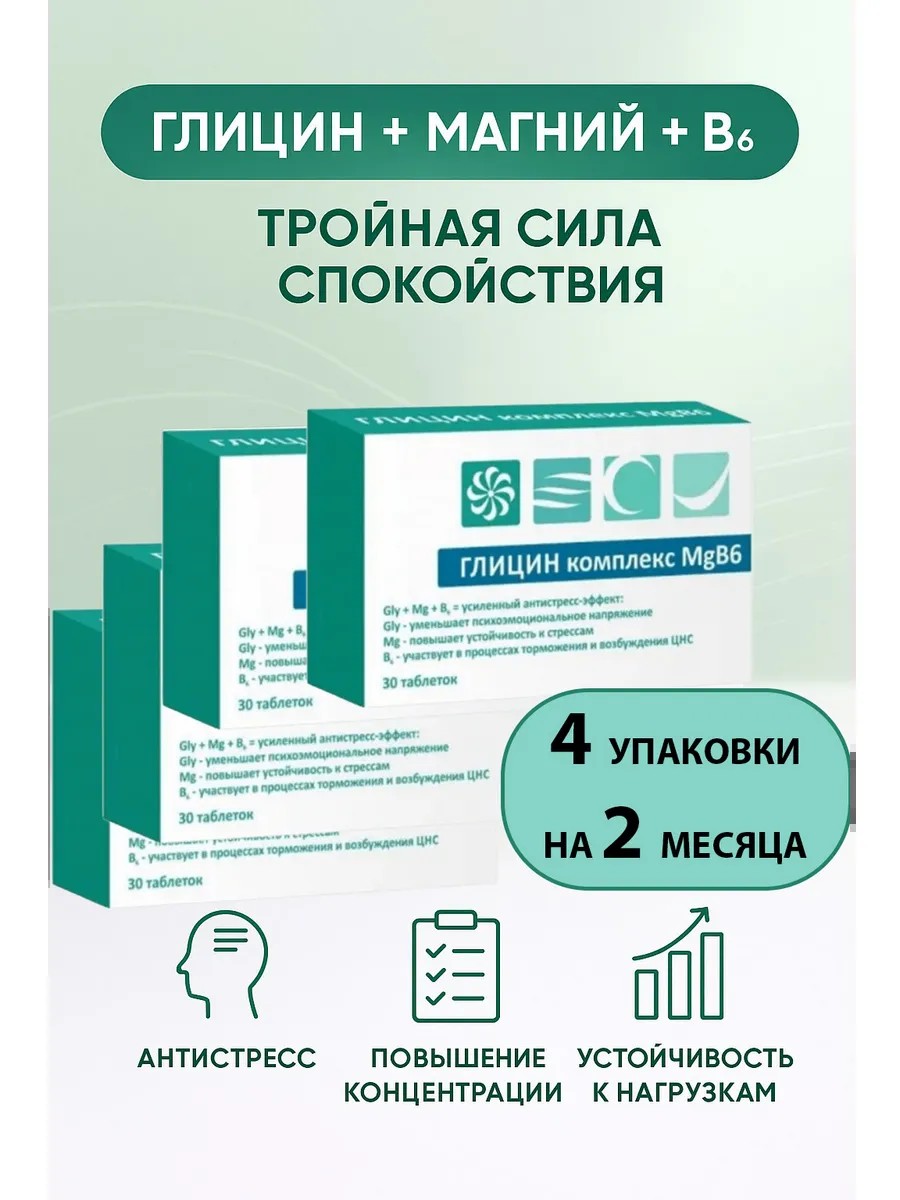 | Комплектация | Глицин комплекс магний 30таб -4упаковки |