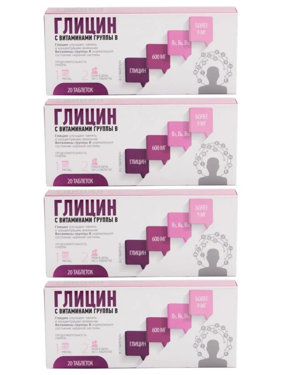 | Package | Glycine with B vitamins tablets 20 pcs; 4 packages |