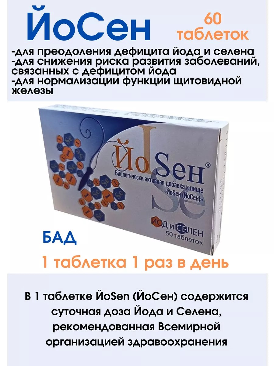 Для нормализации функции щитовидной железы необходимо одновременное поступление в организм йода и селена в пределах норм суточной физиологической потребности.БАД Йосен рекомендуется принимать в период активного роста организма. В этот период организм постоянно вырабатывает тиреоидные гормоны, которые принимают участие в процессах обмена веществ; беременным и кормящим женщинам для профилактики дефицита йода; лицам пожилого возраста для профилактики заболеваний щитовидной железы, жителям экологически неблагоприятных районов, а также районов, удаленных от моря; при наличии наследственной предрасположенности к болезням щитовидной железы; при имеющихся нарушениях функционирования щитовидной железы; для восполнения недостатка селена и йода в организме; для профилактики рецидива зоба после перенесенной операции на щитовидной железе или после окончания медикаментозного лечения зоба. Прием: взрослым по 1 таблетке 1 раз в день во время еды. Продолжительность приема - 2 недели.
