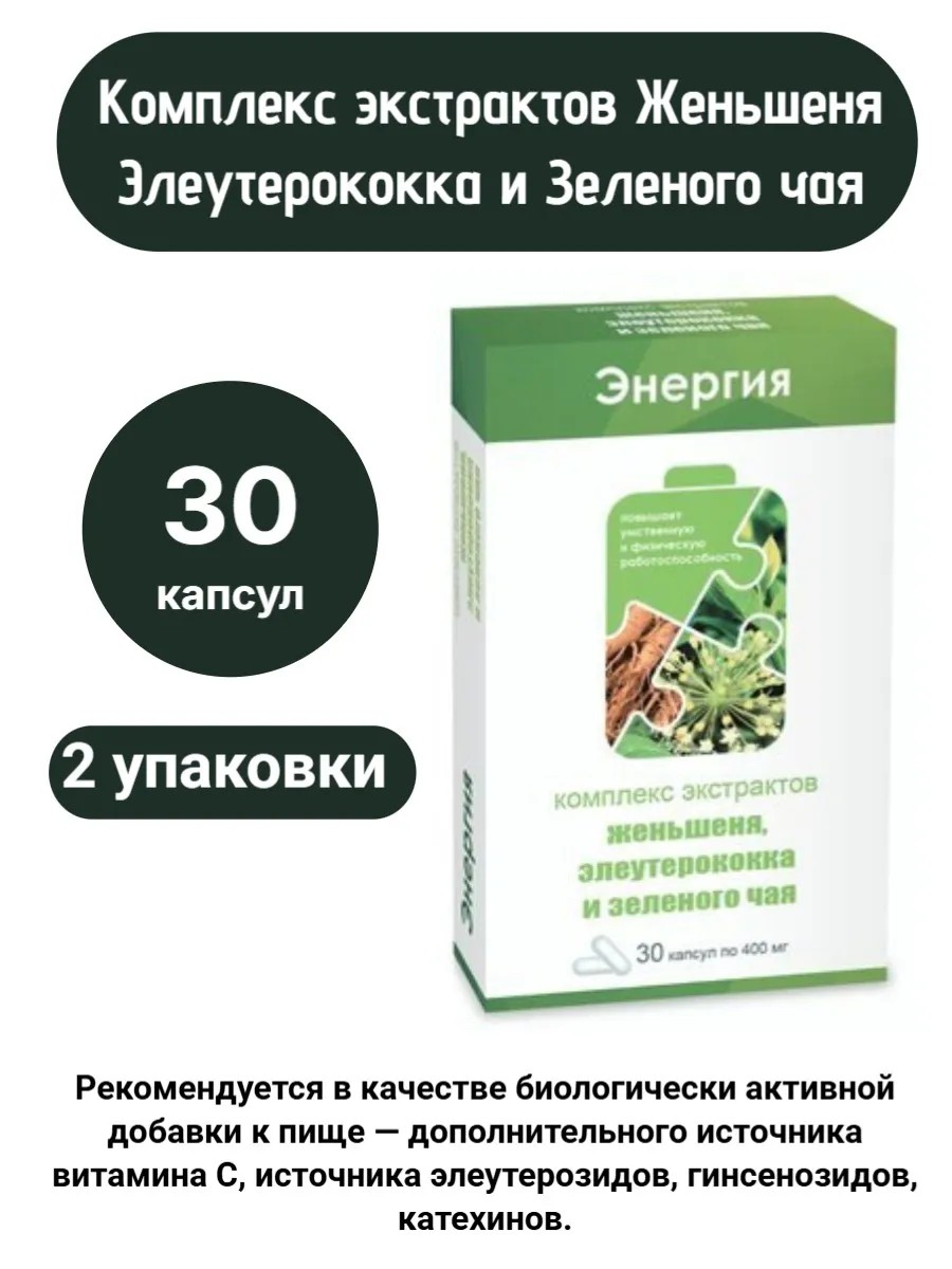 | Комплектация | Комплекс экстрактов Женьшеня Элеутерококка и Зеленого чая капс 30 шт; 2 упаковки |