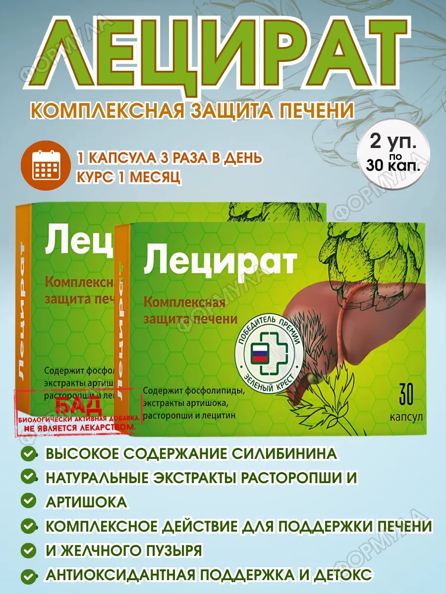 Benefits: Lecirate is a natural, high-quality, and balanced composition, complemented by a convenient capsule form for comfortable administration. All components work synergistically, supporting metabolism, strengthening cells, and promoting bile secretion.