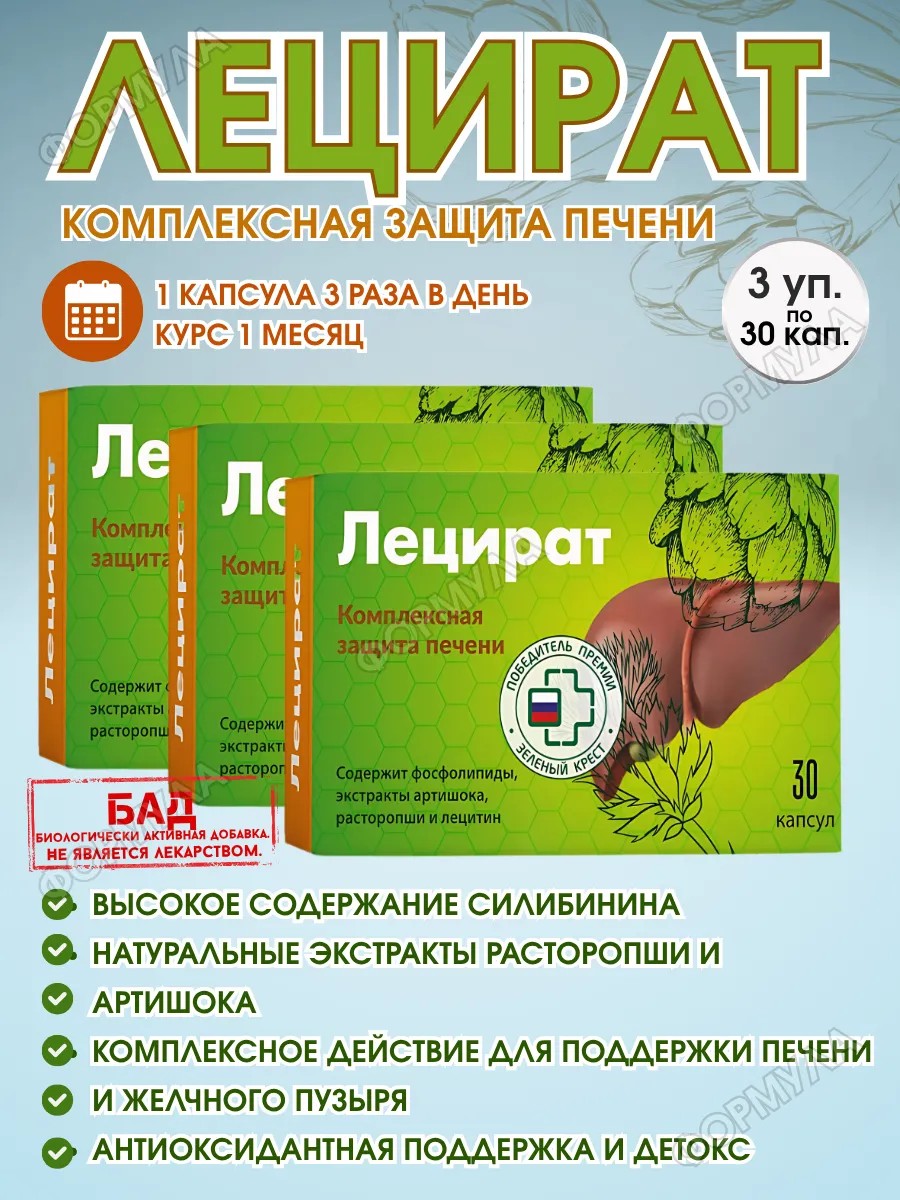 Benefits: Lecirate is a natural, high-quality, and balanced composition, complemented by a convenient capsule form for comfortable administration. All components work synergistically, supporting metabolism, strengthening cells, and promoting bile secretion.