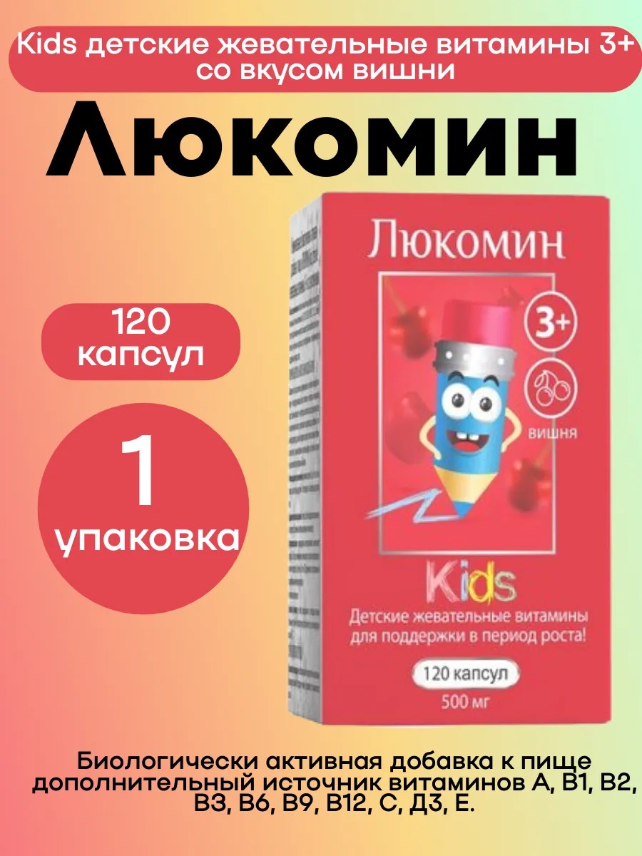 | Комплектация | Люкомин Kids детские жевательные витамины 3+ со вкусом вишни капс 120 шт; 1 упаковка |