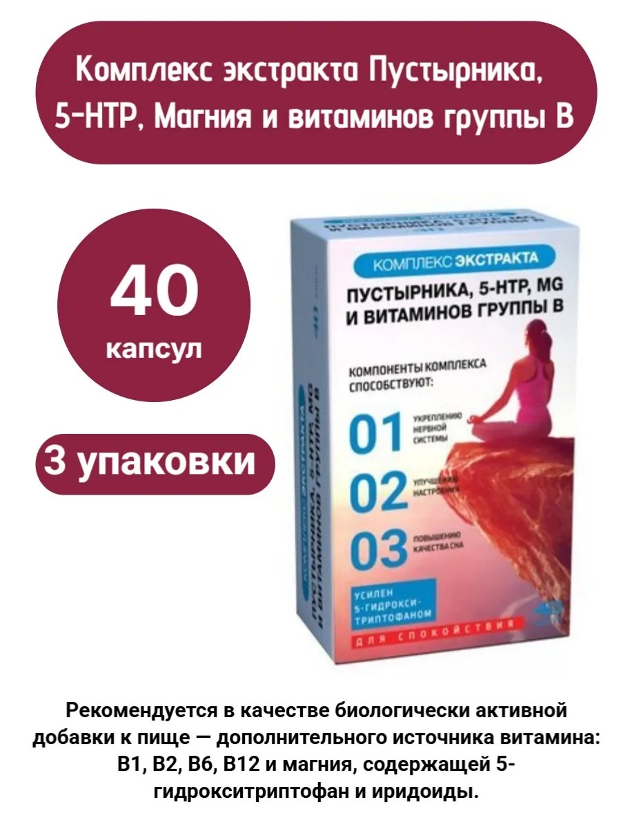 | Комплектация | Комплекс экстракта Пустырника, 5-НТР, Магния и витаминов группы В капс 40 шт |